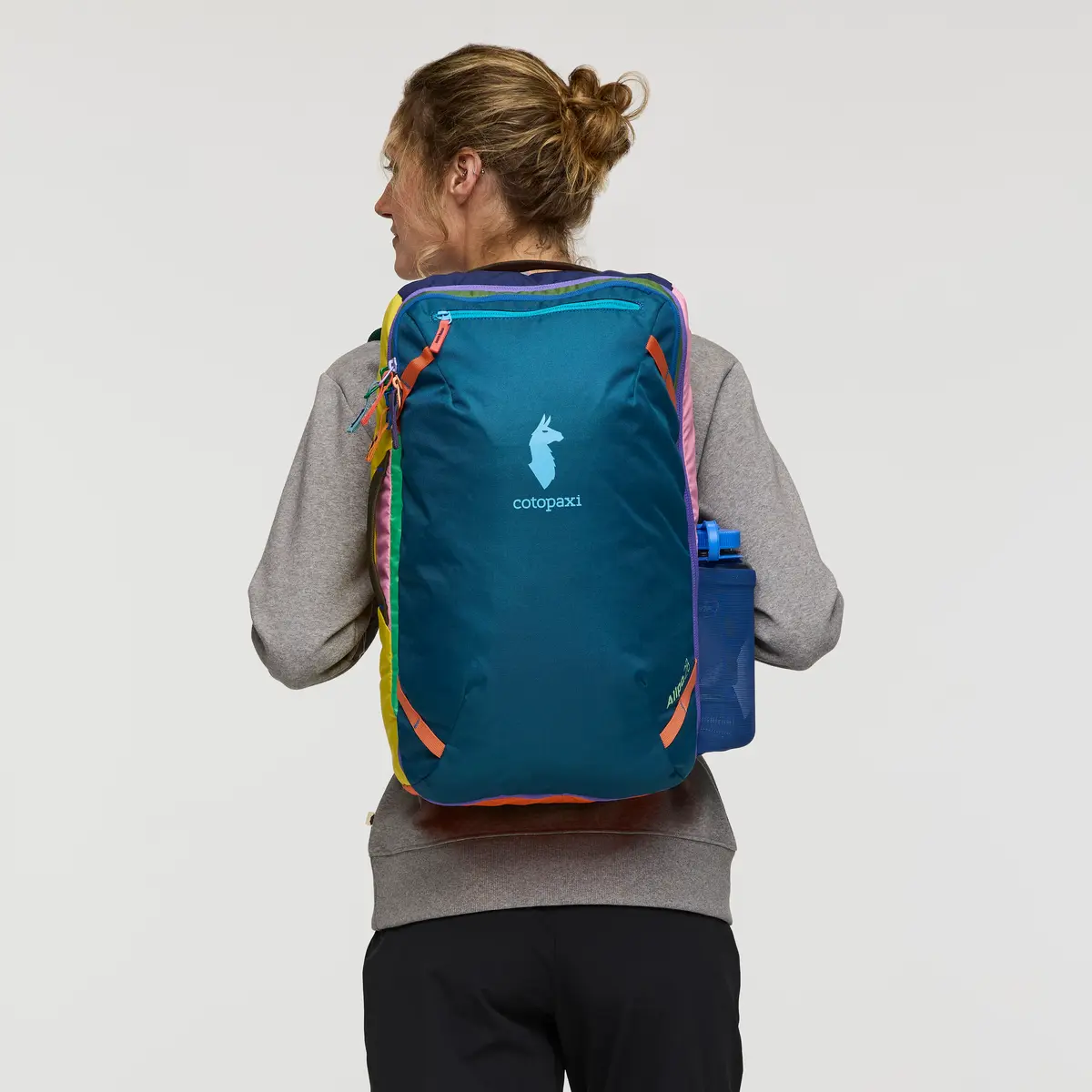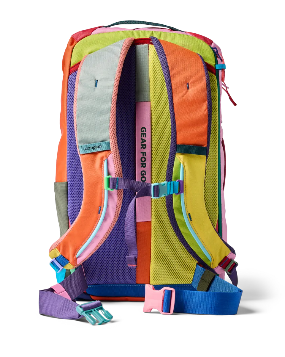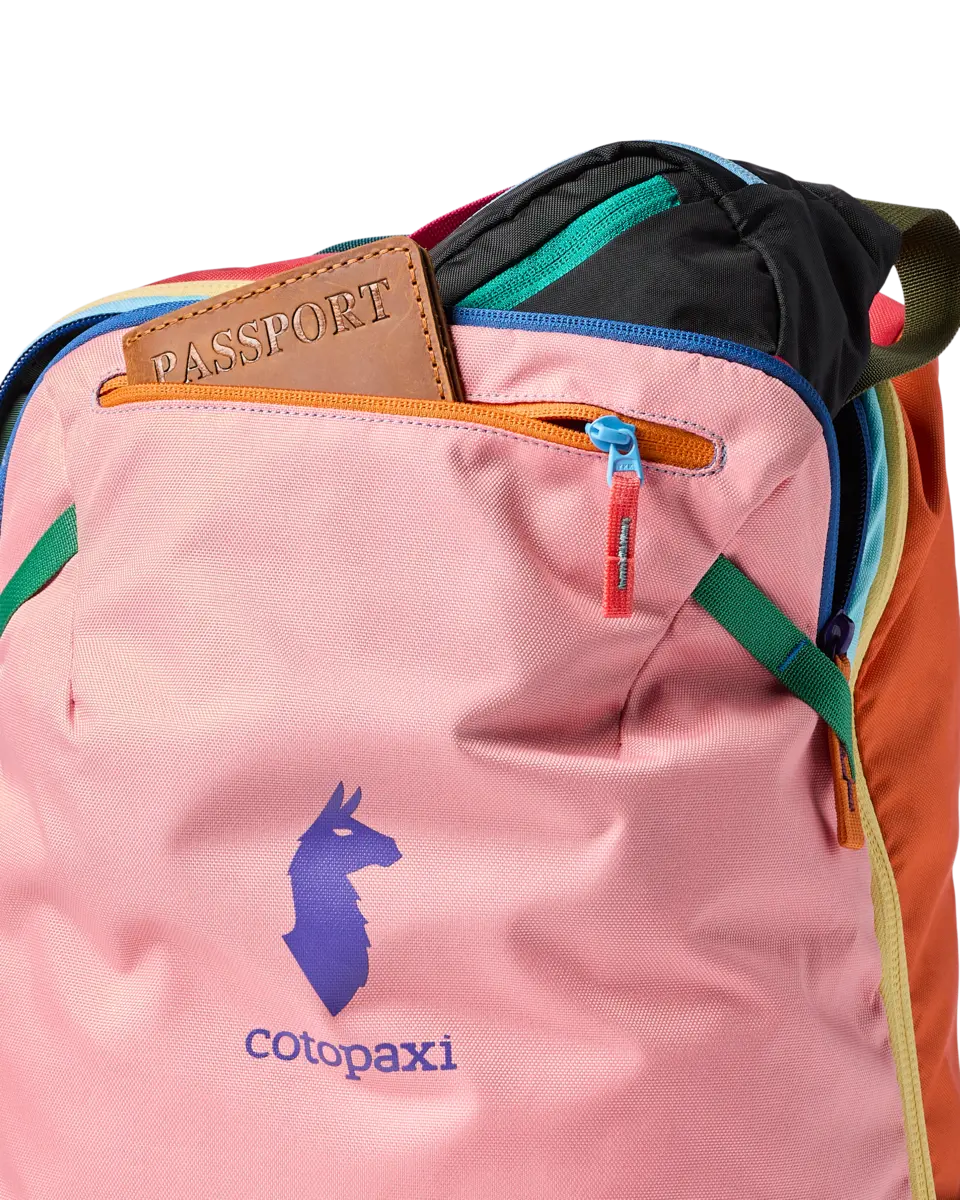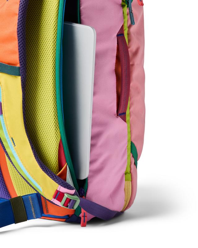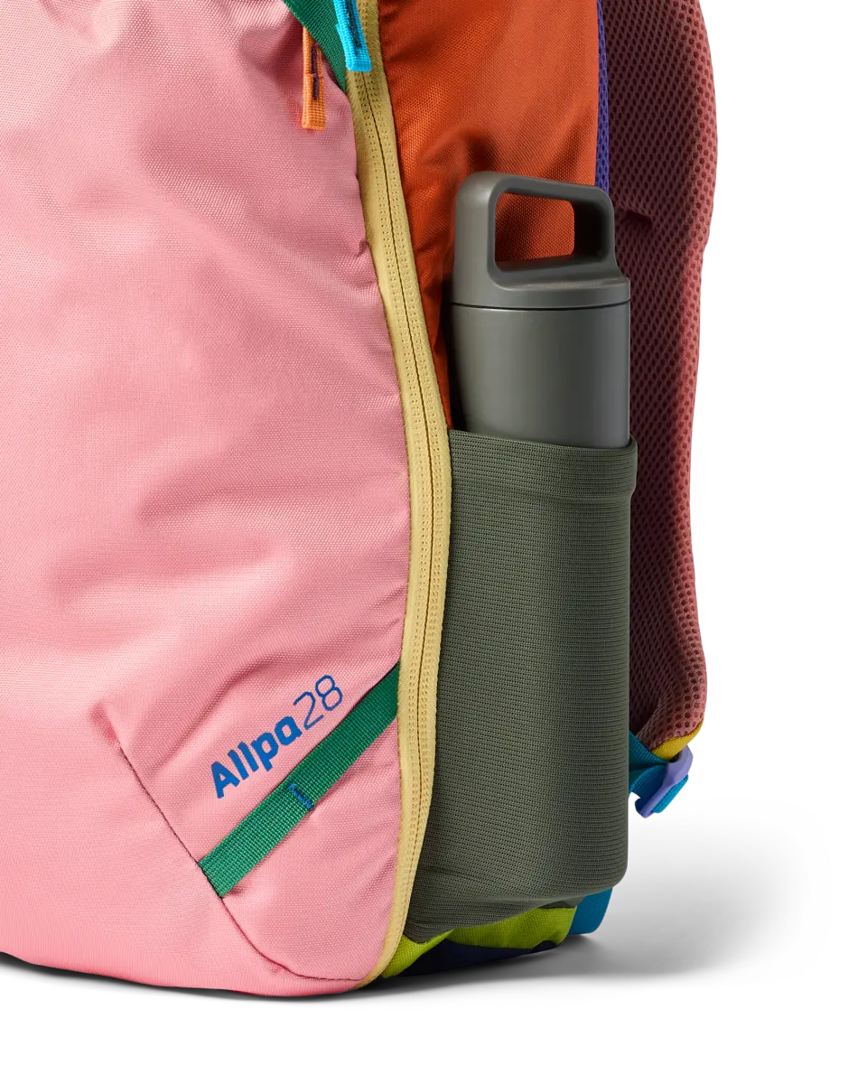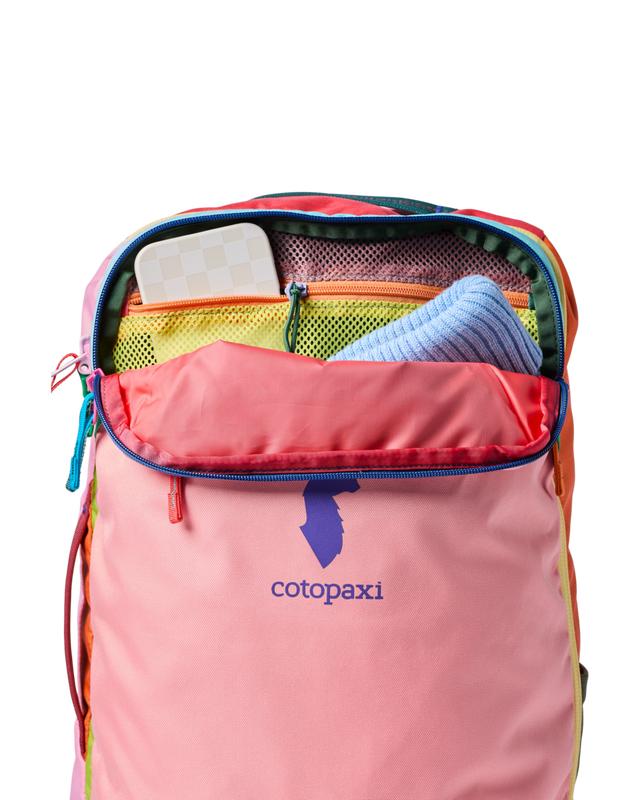 Our newly redesigned Allpa 28L reflects our quest for pack perfection. While all the customer-favorite features of our bestselling packs remain, we made a few game-changing updates. New features include air mesh shoulder straps for an ultra-comfortable carry, an exterior stretch water bottle pocket, and a luggage pass-through strap that easily slides over a roller bag handle. Identical to our standard Allpa 28L Travel Pack in features and function, this Del Día version uses high-quality deadstock fabric that might have otherwise ended up in the landfill, making each pack one-of-a-kind.backpacktravel, everydaycarryon, personalboth, yes Description Travel fast & light on weekend adventures with this versatile pack. This Del Día version uses high-quality remnant fabrics, making each pack one-of-a-kind. Designed for Weekend getaways, urban explorations, short trips Trip Length 1-2 days Carry on compatibility Personal item Features