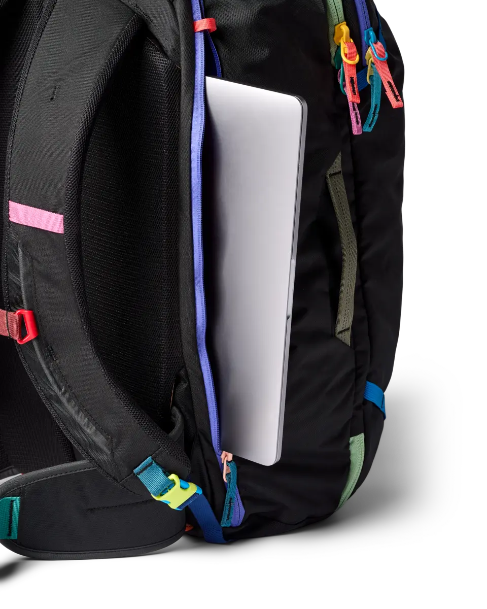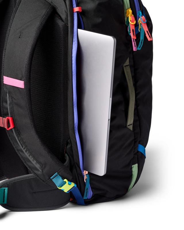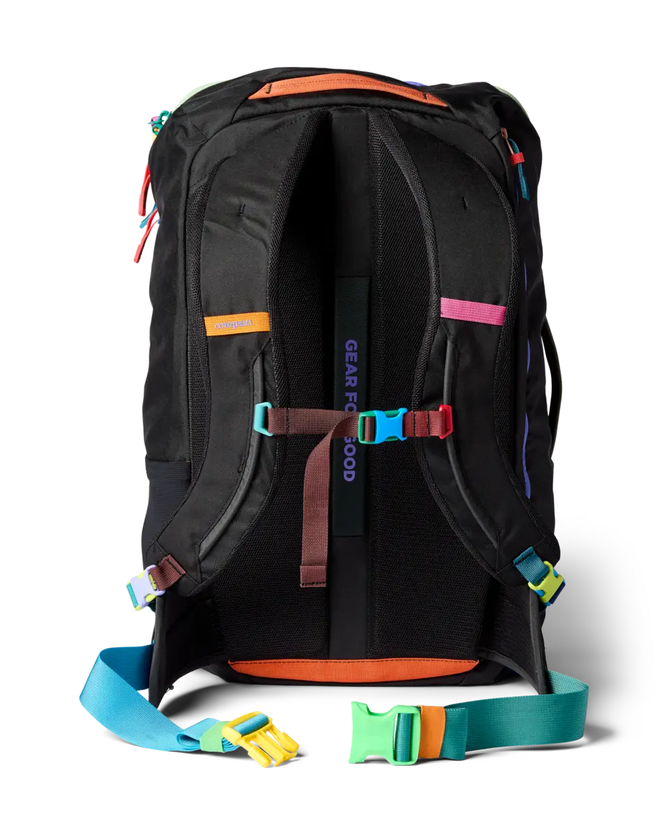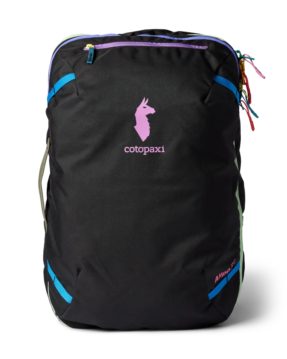 Meet the monochromatic version of our classic Allpa 35L Travel Pack. In addition to being made from 100% leftover black fabrics, this Allpa 35L is newly redesigned, reflecting our quest for pack perfection. While all the customer-favorite features of our bestselling Allpas remain, we’ve made a few game-changing updates. New features include better weight distribution and air mesh shoulder straps for an ultra-comfortable carry, an exterior stretch water bottle pocket, and a luggage pass-through strap that easily slides over the handle of a roller bag (like our Allpa Roller Bags).Identical to our standard Allpa 35L Travel Pack in features and function, this Del Día version uses high-quality deadstock fabric that might have otherwise ended up in the landfill, making each pack one-of-a-kind.About Del Día Element Color Drops Del Día Dark is inspired by lava rock and starry skies. Just like our other Del Día packs, each of these monochromatic packs is totally one-of-a-kind. backpacktravelcarryonboth, yes
