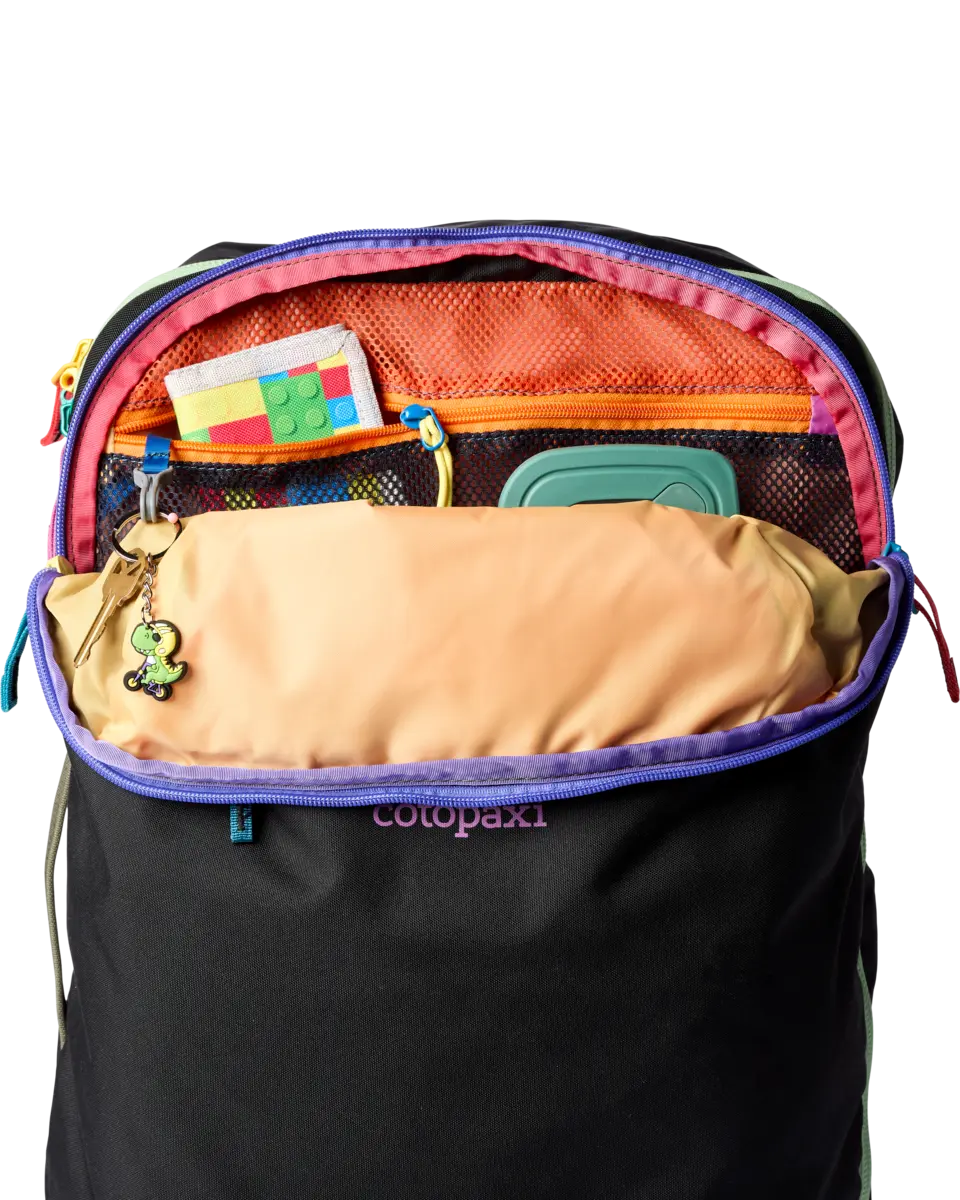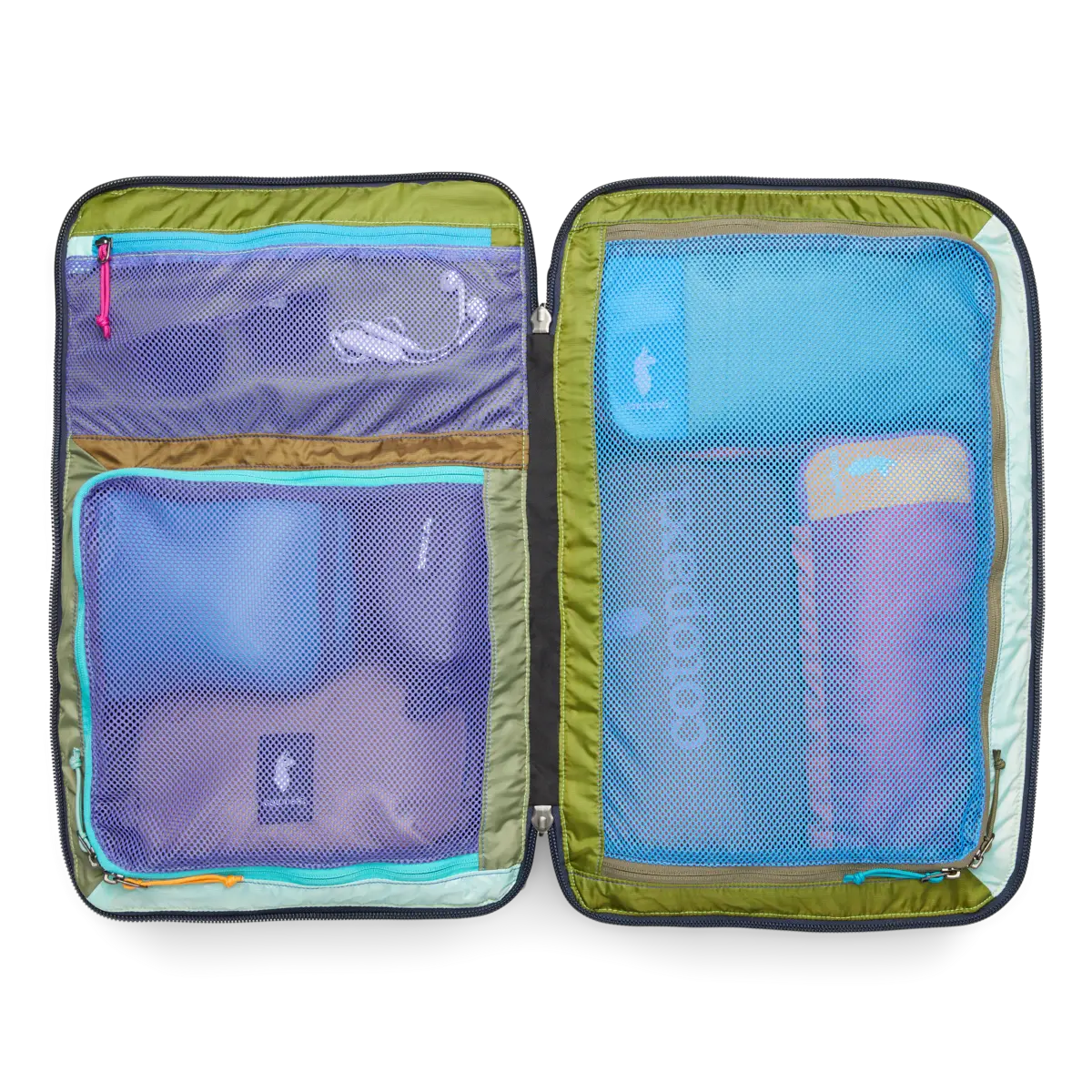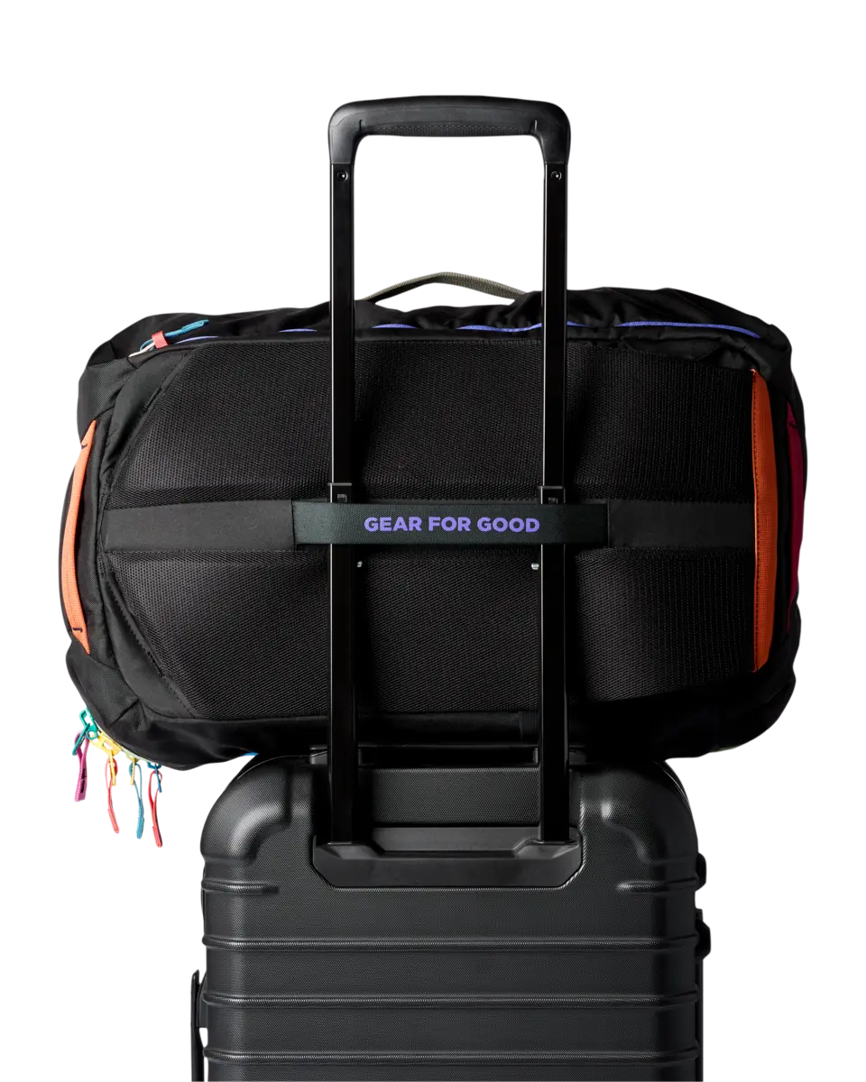 Meet the monochromatic version of our classic Allpa 35L Travel Pack. In addition to being made from 100% leftover black fabrics, this Allpa 35L is newly redesigned, reflecting our quest for pack perfection. While all the customer-favorite features of our bestselling Allpas remain, we’ve made a few game-changing updates. New features include better weight distribution and air mesh shoulder straps for an ultra-comfortable carry, an exterior stretch water bottle pocket, and a luggage pass-through strap that easily slides over the handle of a roller bag (like our Allpa Roller Bags).Identical to our standard Allpa 35L Travel Pack in features and function, this Del Día version uses high-quality deadstock fabric that might have otherwise ended up in the landfill, making each pack one-of-a-kind.About Del Día Element Color Drops Del Día Dark is inspired by lava rock and starry skies. Just like our other Del Día packs, each of these monochromatic packs is totally one-of-a-kind. backpacktravelcarryonboth, yes