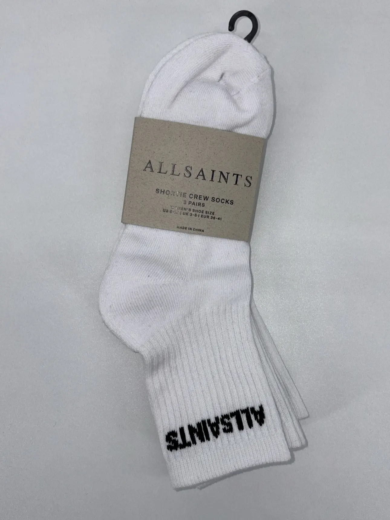 -A 3-pack of AllSaints shortie crew socks in a clean, athletic rib design.