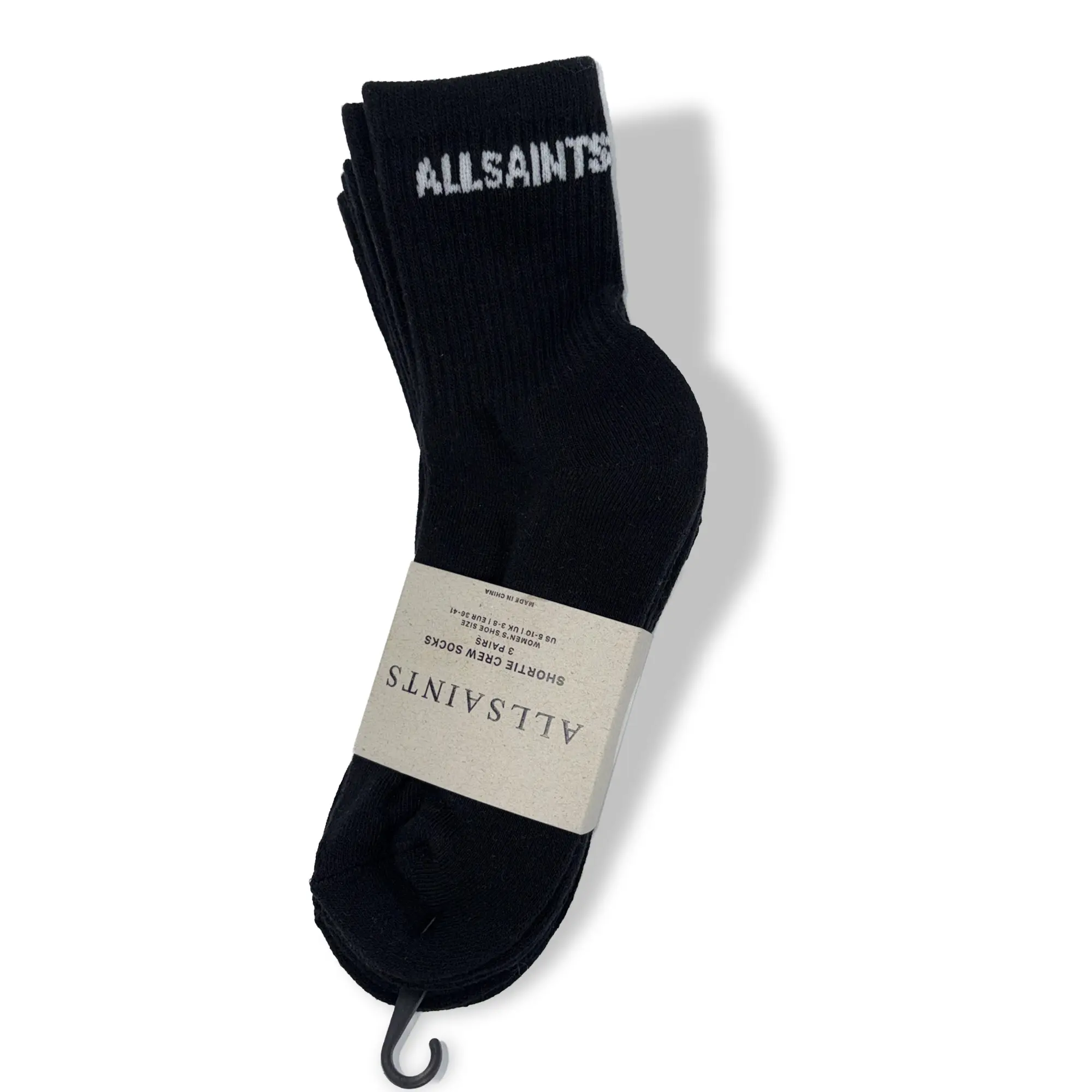 -A 3-pack of classic black ribbed crew socks from AllSaints.