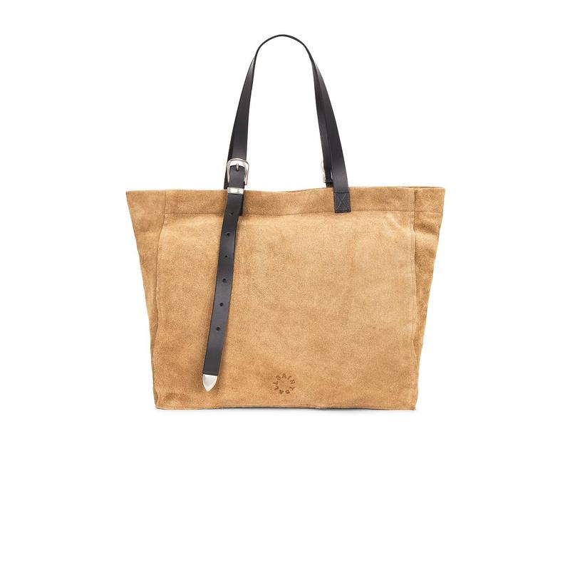 5. ALLSAINTS Haven Suede Tote in Biscuit Brown