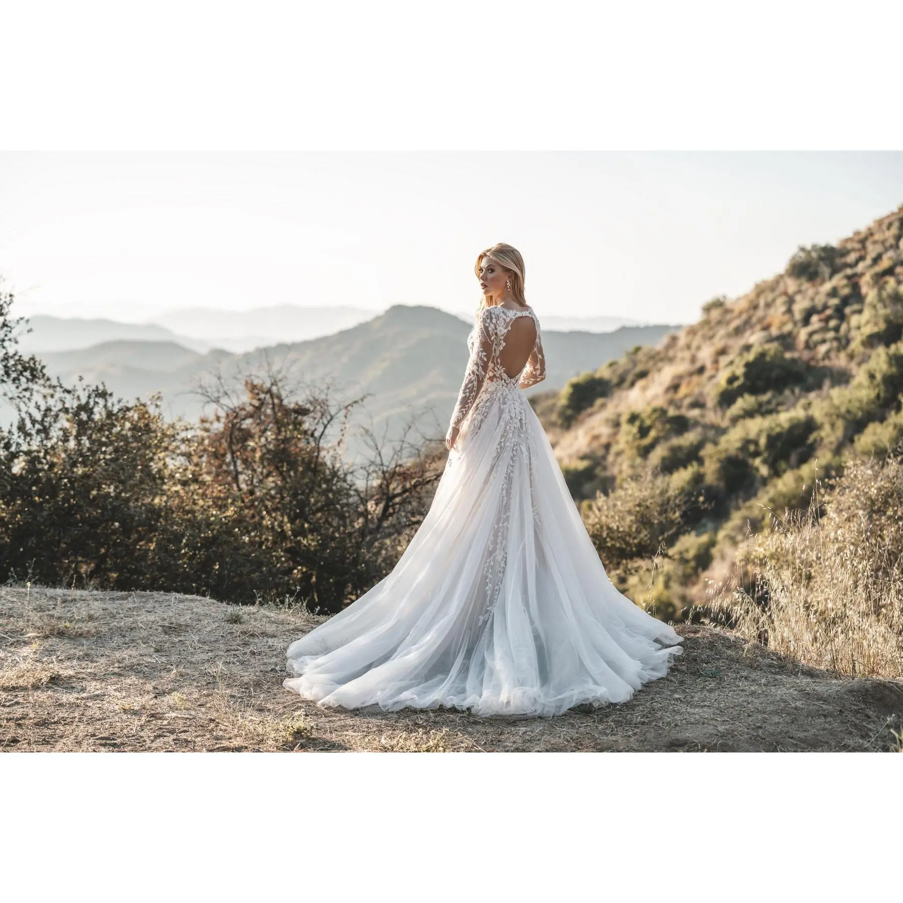 apture the essence of timeless romance with the Allure Romance Wedding Dress R3708, a gown that whispers elegance with a touch of whimsical charm. This enchanting ballgown features an illusion lace long sleeve design, offering a touch of coverage and a hint of allure. Delicate lace appliques stream across the bodice and sleeves, forming cascading vines of shimmering beads, sequins, and pearls. This intricate detailing, reminiscent of the Allure R3708, is a testament to meticulous craftsmanship and adds a touch of captivating texture to the dress.The fitted bodice flatters your figure and cinches your waist, drawing the eye to a whimsical floral appliqu detail adorning the waistline. The plunging neckline adds a touch of drama, creating a silhouette that's both elegant and alluring. The back adds another touch of drama with an open keyhole detail, hinting at subtle skin for a touch of intrigue.The skirt, crafted from luxurious tulle, cascades into a voluminous ball gown silhouette. This classic silhouette offers a sense of grandeur as you walk down the aisle, leaving a trail of soft tulle in your wake. Unlike a simple A-line silhouette, the ball gown creates a more formal and dramatic look, perfect for a fairytale wedding ceremony.The Allure Romance Wedding Dress R3708 is a perfect choice for the bride who wants to feel like a princess on her wedding day. It's a gown that embodies timeless elegance with a touch of whimsical charm, making it a perfect choice for creating a truly unforgettable entrance and memories that will last a lifetime.
