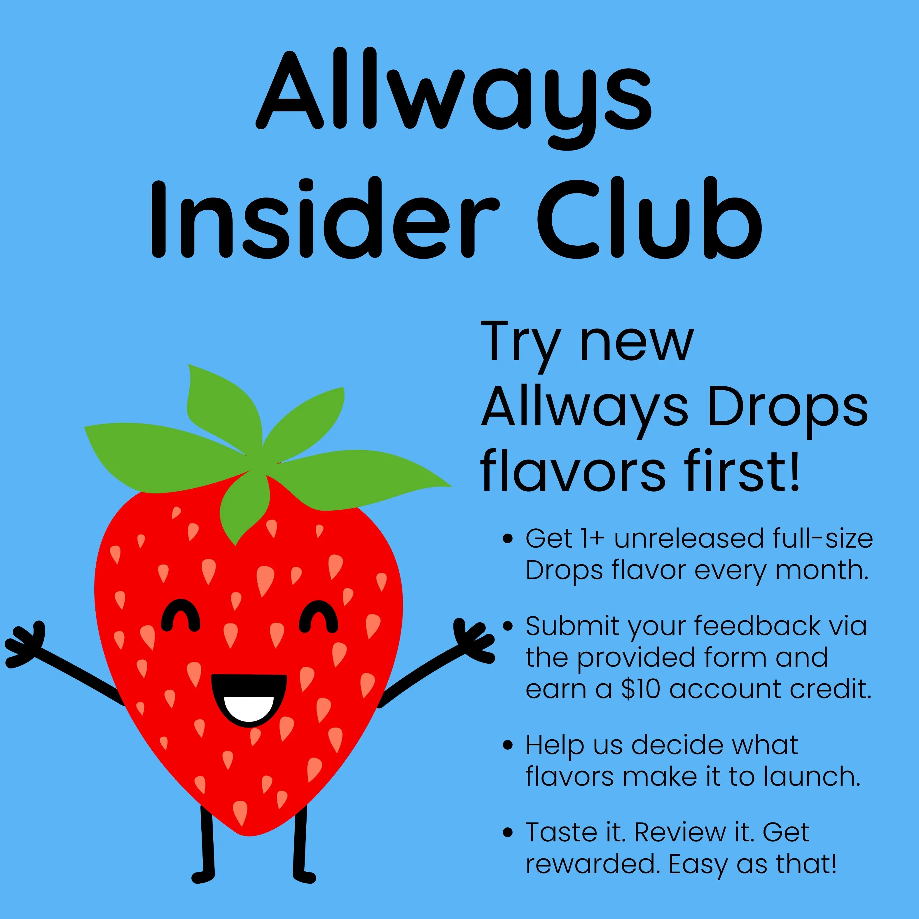 I look forward to the Allways Insider Club every month. The flavors are always on point and being an insider gives you the best deal. You get a monthly flavor, sometimes 2 flavors, the price is better, and you are getting natural flavors without fake ingredients. Join today!