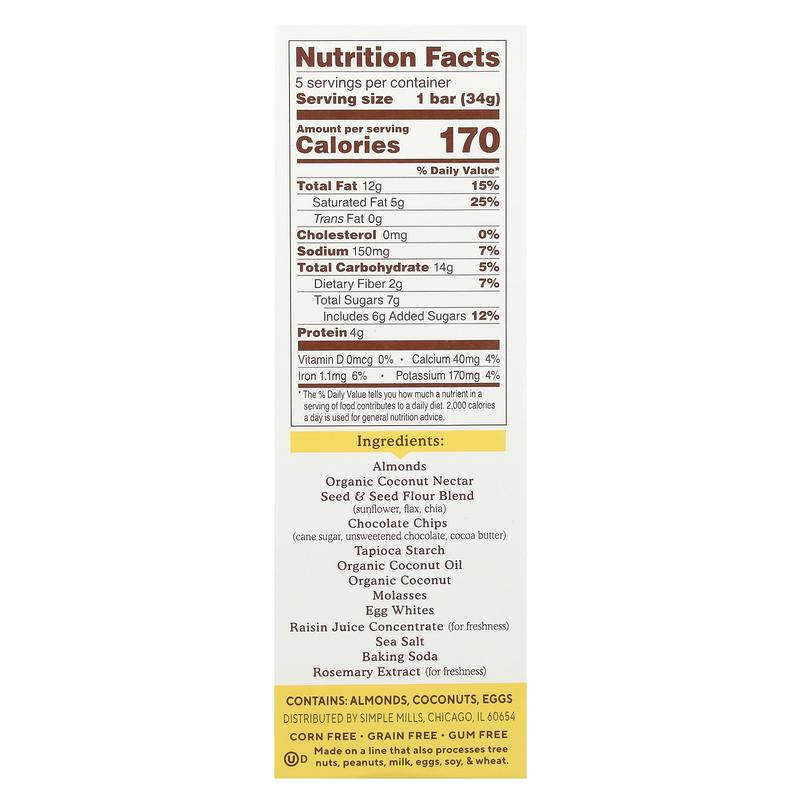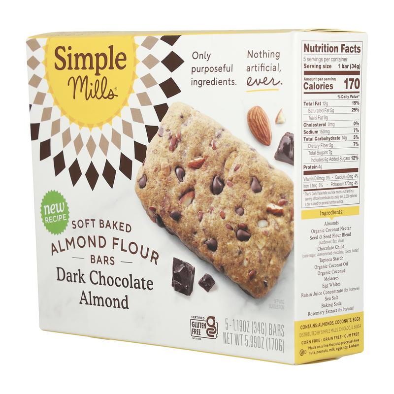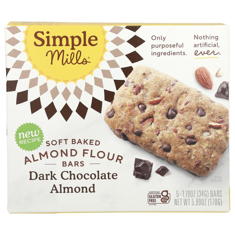 5. Simple Mills Soft Baked Almond Flour Bars, Dark Chocolate Almond, 5 Bars, 1.19 oz (34 g) Each