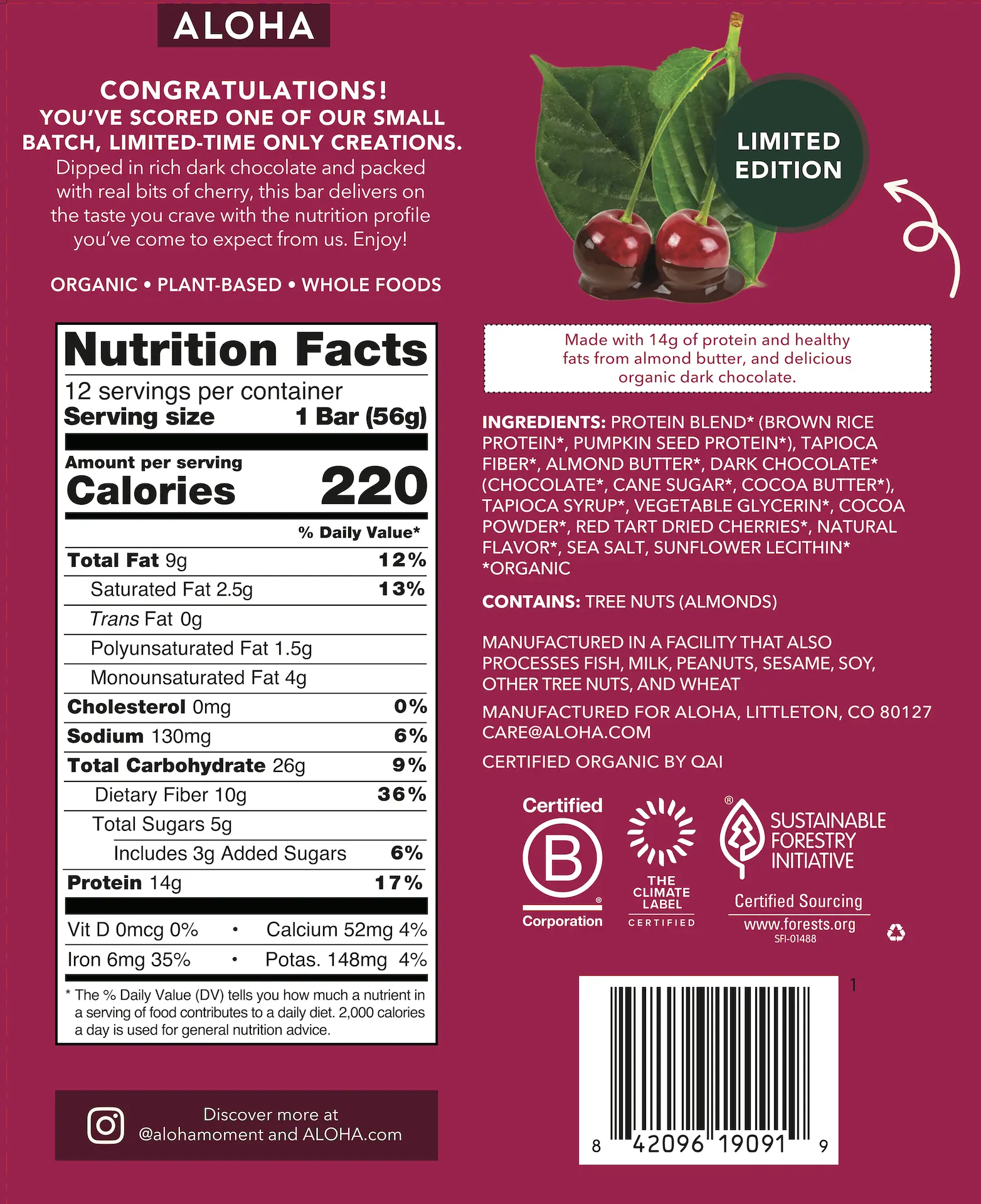 The new Chocolate Cherry bars are ALOHA's best flavor to date!! The velvety dark chocolate combined with the slight tartness of the real cherries is an amazing combination!