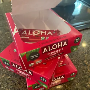I love Aloha protein bars. This new flavor has quickly became a favorite for me and my husband. The dark chocolate is good and I really like the sweet cherry taste. I also like that there are chunks of real cherries in the bar.