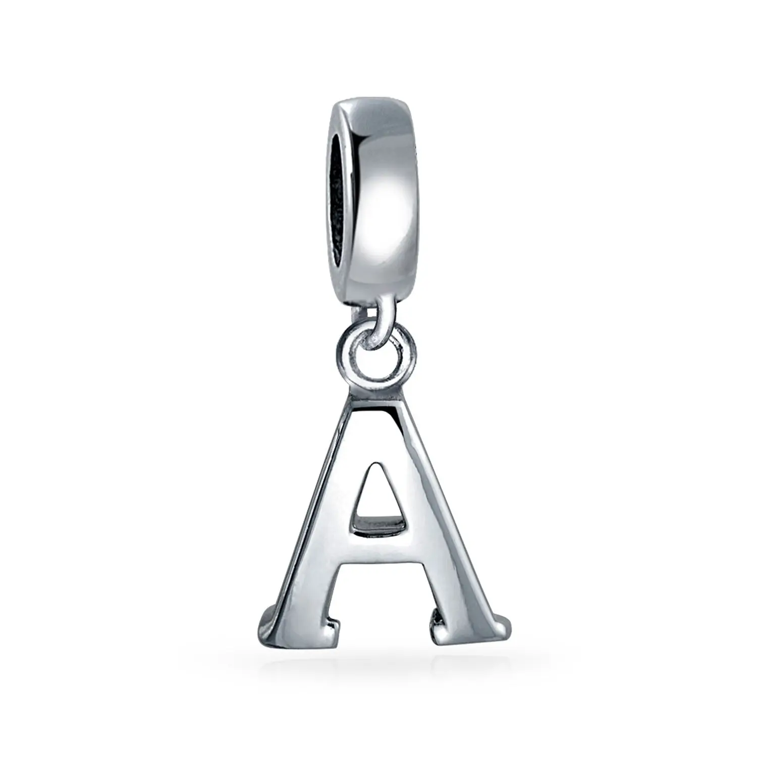 Initial Alphabet Bead Charm Sterling Silver A-Z for European Bracelet