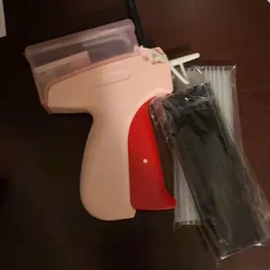 I thought this actually put a threaded stitch into clothing but it's really just the plastic tags that stores use for brand/$ label. Kind of weird, so its not a very discrete stitch because it just looks like you didn't pull your plastic tags.