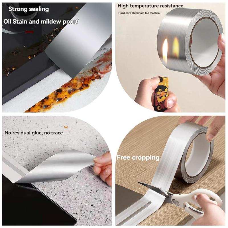 Upgrade your home with this heavy-duty aluminum foil tape, designed to keep your kitchen and bathroom clean and protected. With waterproof, oil-proof, and high-temperature resistant properties, it’s perfect for sealing stove edges, sink gaps, and other areas prone to moisture and dirt.