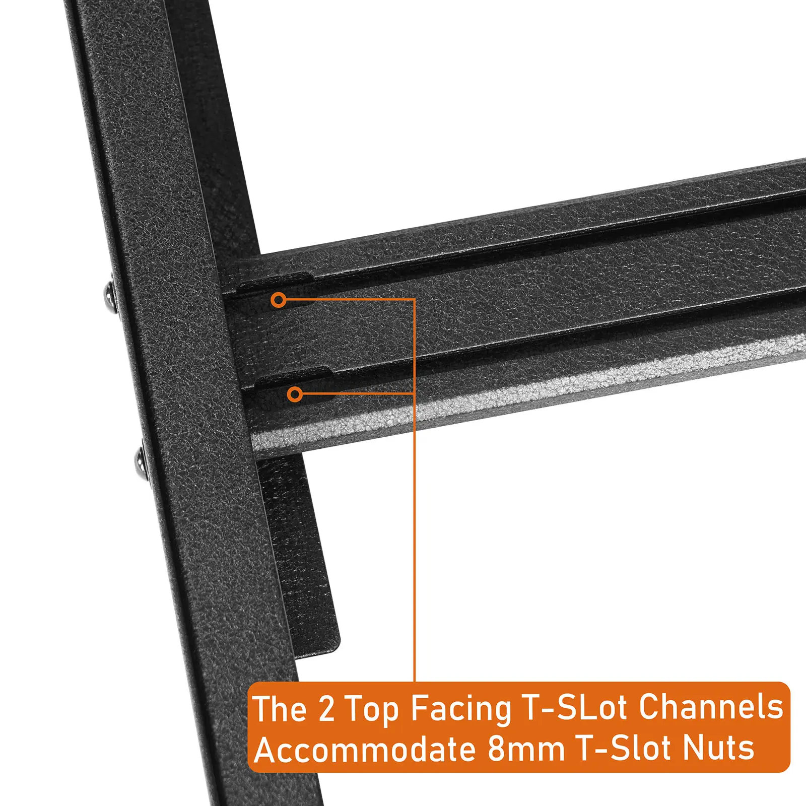 ·The T-slots on the tops of the slats accommodate standard 8mm T-slot nuts