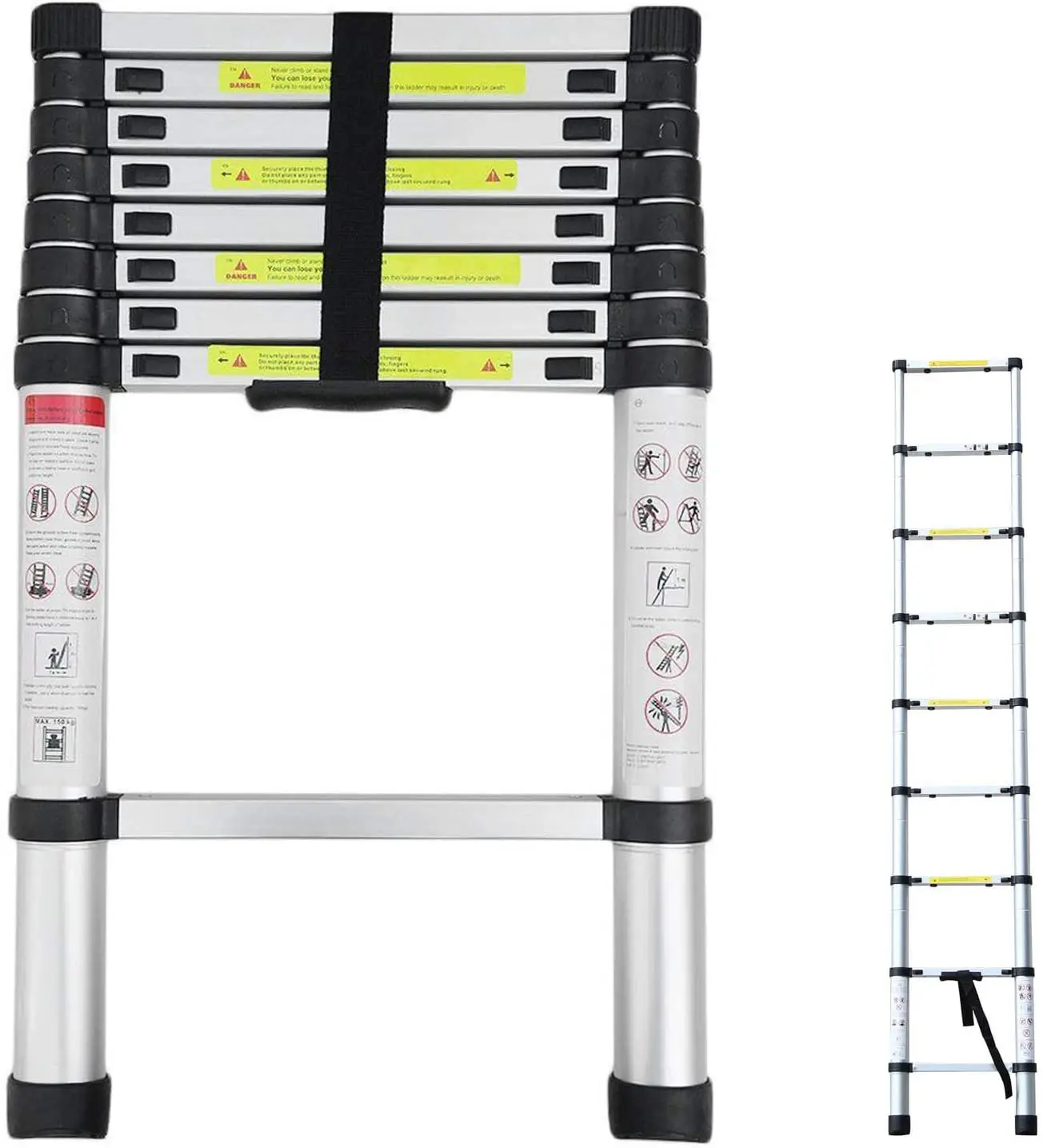 Multi-Purpose Aluminum Telescoping Ladder 2.6M 8.5ft Extension Ladder Adjustable Height 330lbs Load Capacity.