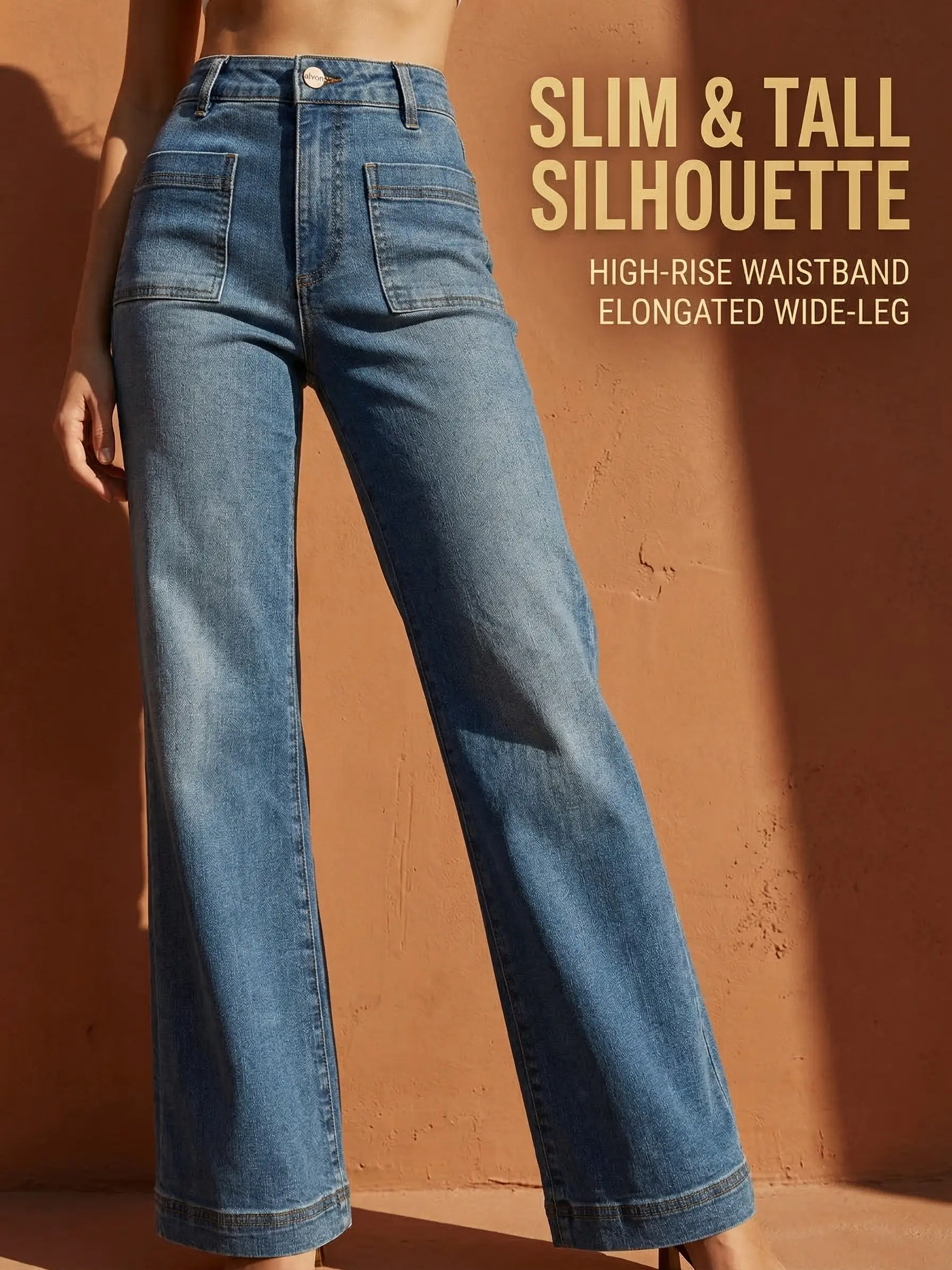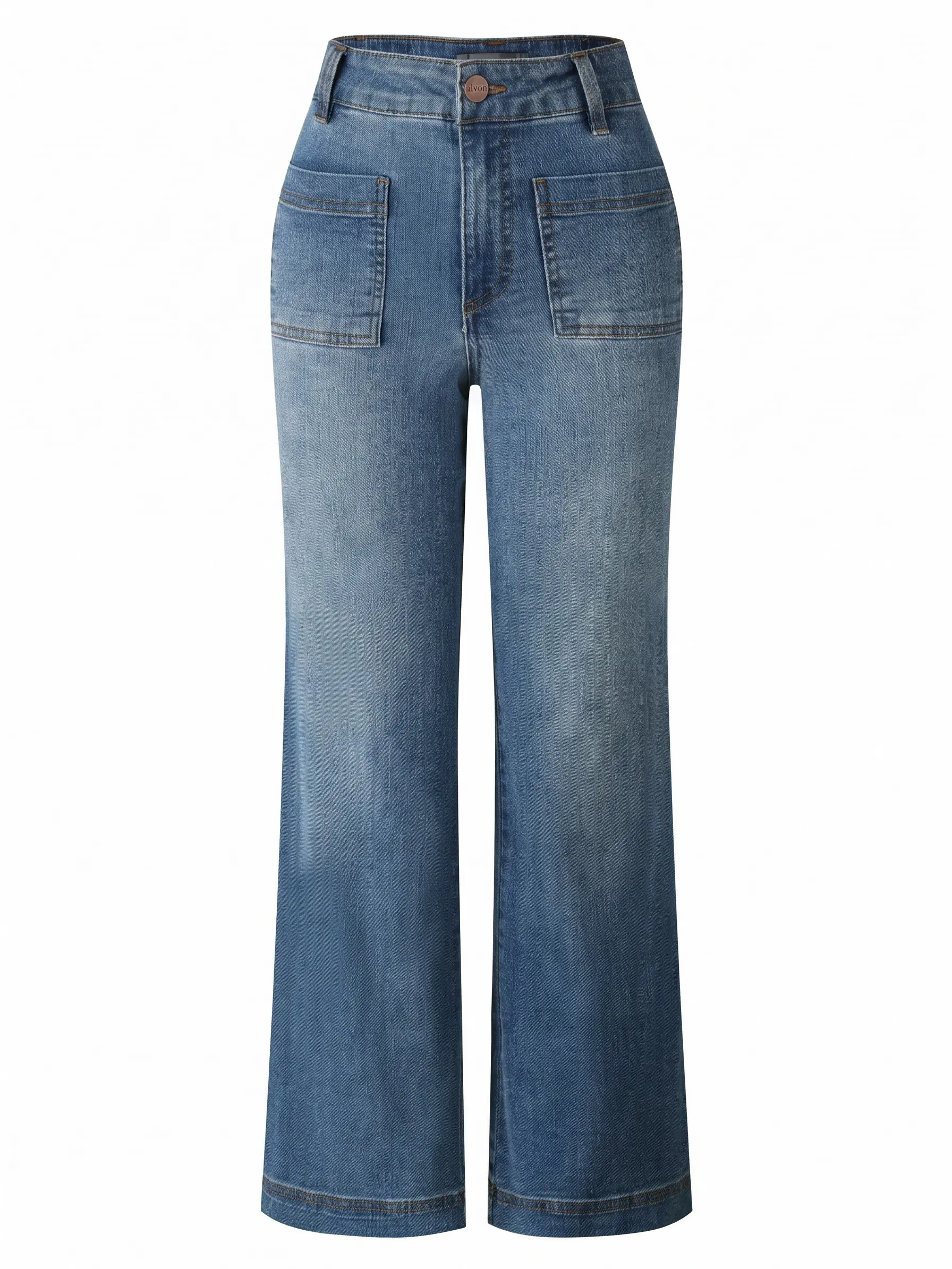 ALVON Women's Stretch Denim Pants Recycled High Waist Wide Leg Jeans Classic Streetwear Comfort Baggy Trouser Maxi Pocket Fitted
