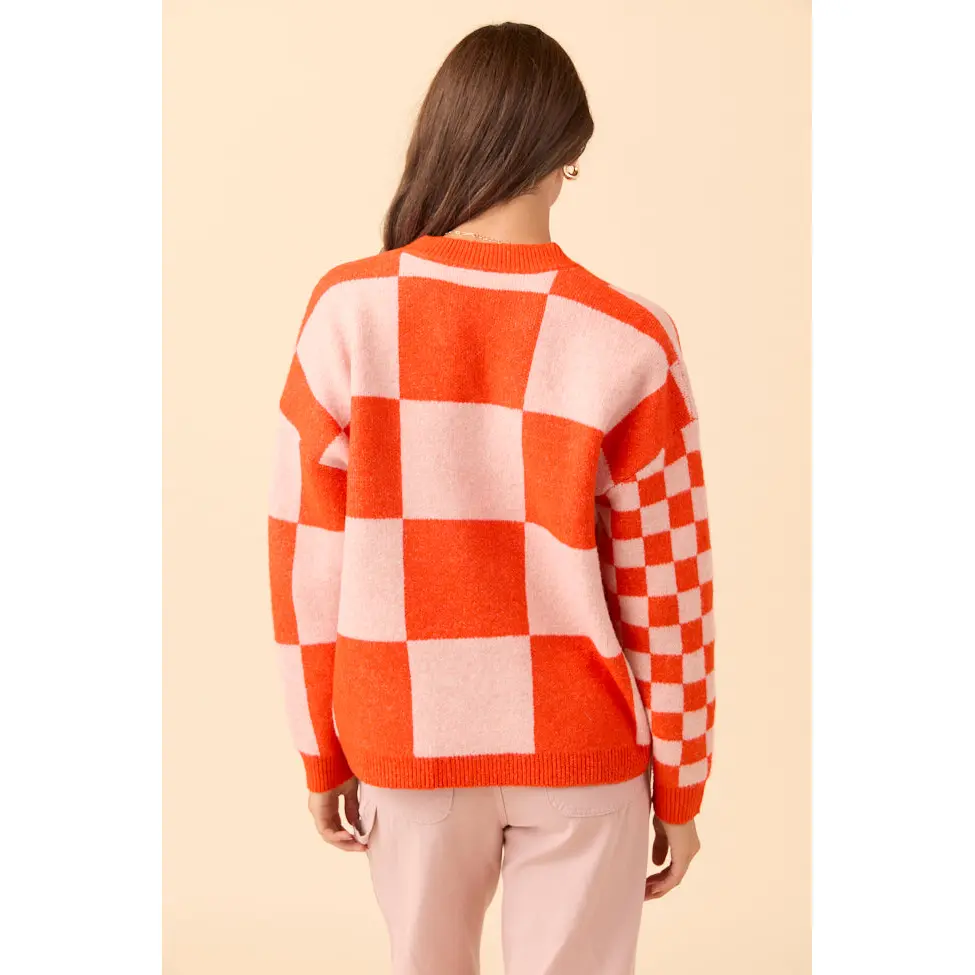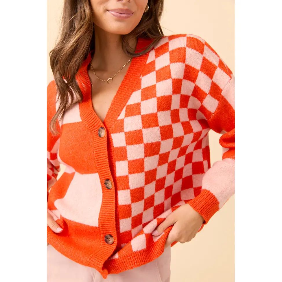 Alyssia Coral And Orange Checkered Cardigan FINAL SALE