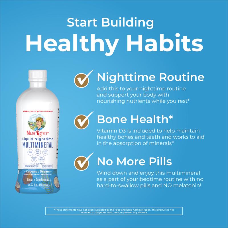 Liquid Nighttime Multimineral: Wind down and enjoy the multimineral as a part of your bedtime routine with no hard-to-swallow pills and NO melatonin! Add this to your nighttime routine and support your body with nourishing nutrients while you rest!