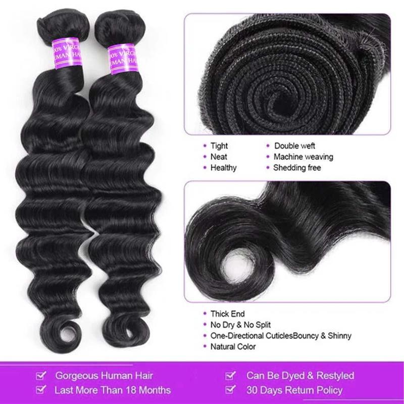 Ama Thick Loose Deep Wave Bundles Virgin Human Hair Weave Bundles Natural Color Remy Hair Weave Extensions Quick Weave Extensions 1/3/4 Bundles