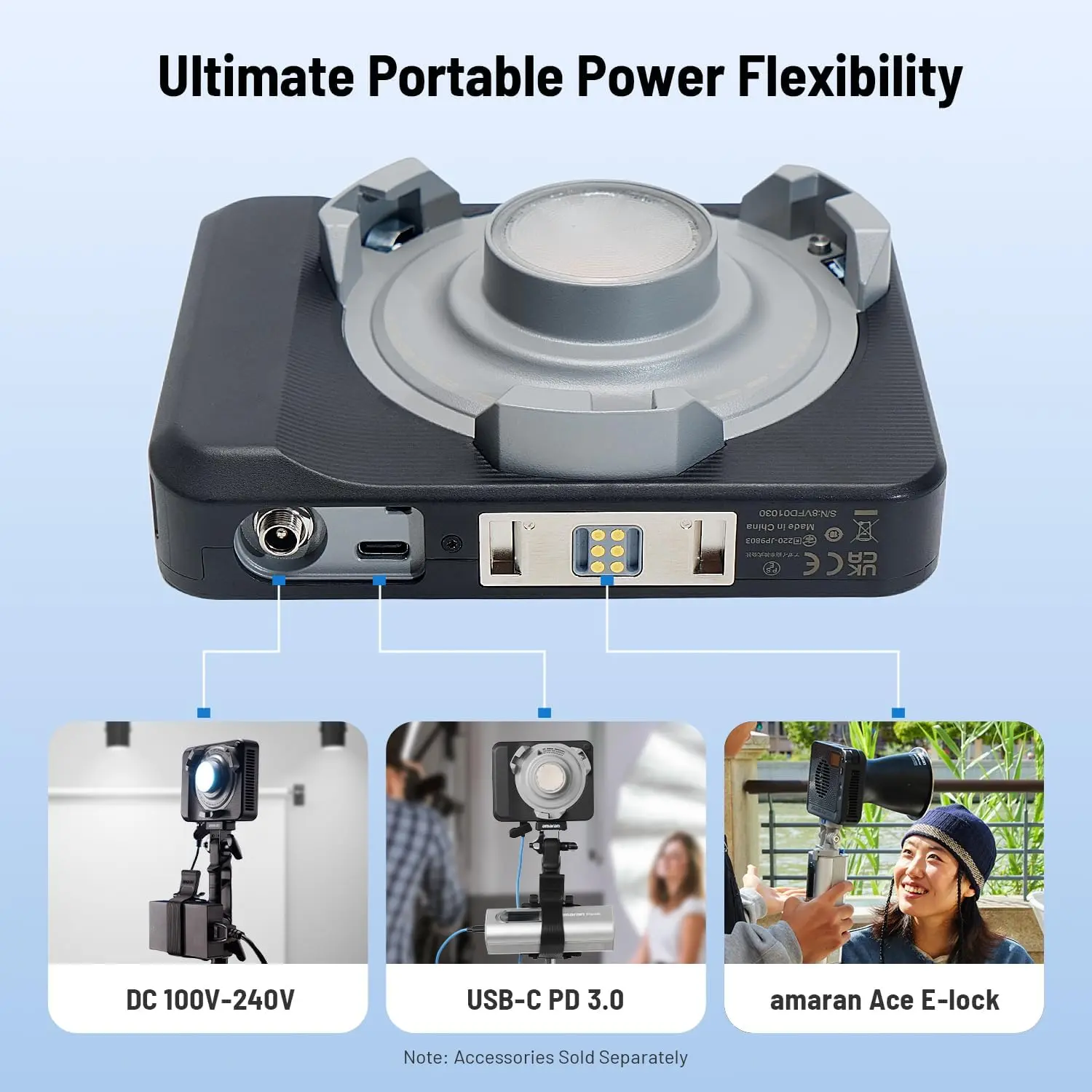 ·Ultimate portable power flexibility: In addition to the included DC power adapter, the amaran Ray 60c is built for mobility with amaran Ace E-Lock and USB-C PD support. Run for 46 minutes at 100% output with the amaran Peak 75 via Ace E-Lock for a cable-free setup or 1 hour via the USB-C port. Or power with USB-C PD power banks and chargers – eliminating NP-F or V-Mount batteries while keeping your setup streamlined from outdoor to studio shoots