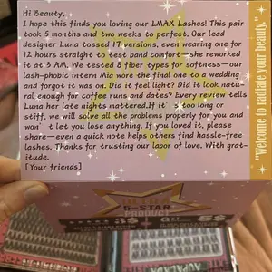 I love these lashes so much. They are fluffy and it shows which eyes you have and how to apply for people who are new. The lash’s glue does not get everywhere and the lashes are easy to put on. I recommend buying these and you can choose natural or bold lashes with the lash maps too. Buy this!👍😁