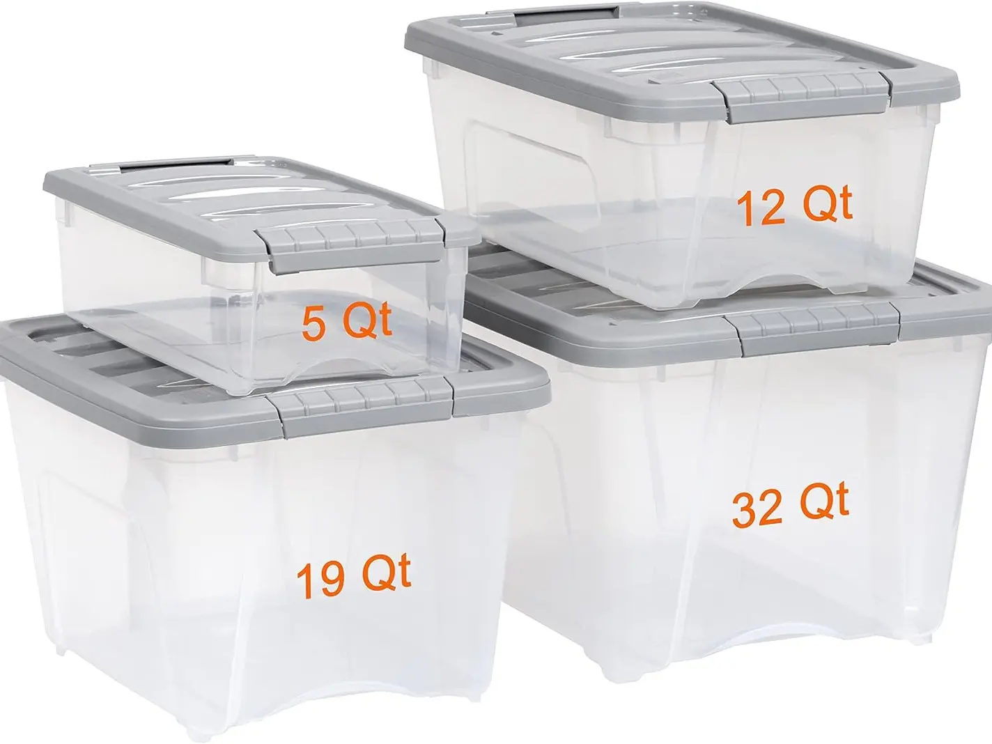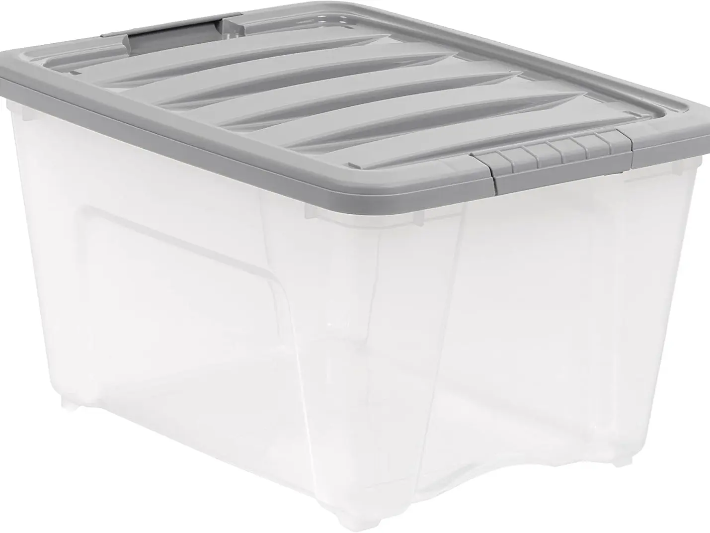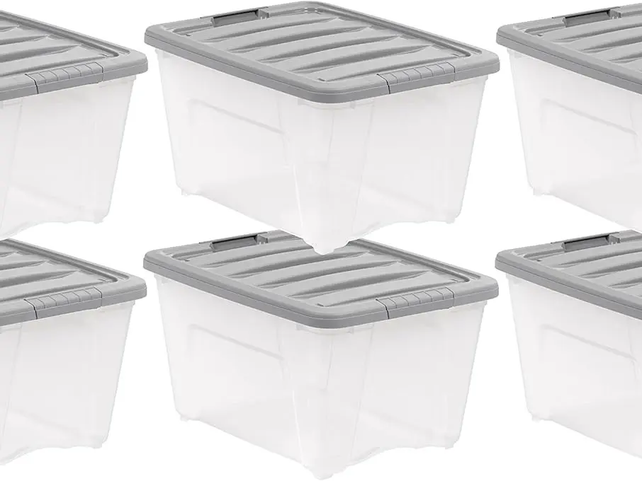 These Amazon Basics plastic storage containers are ideal for organizing your home or office. The secure latching lids and stackable design make them a practical choice for maximizing storage space. The 32 quart capacity and set of 6 provide ample storage solutions. The clear/grey color ensures easy visibility of contents.
