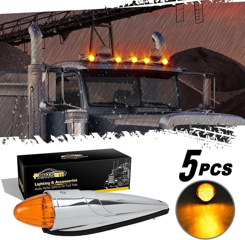 ·Partsam 17 LED Amber Watermelon Grakon 1000 style cab lights with Heavy duty foam gasket and plastic chrome housing. Package Included: 5PCS Cab Marker Light