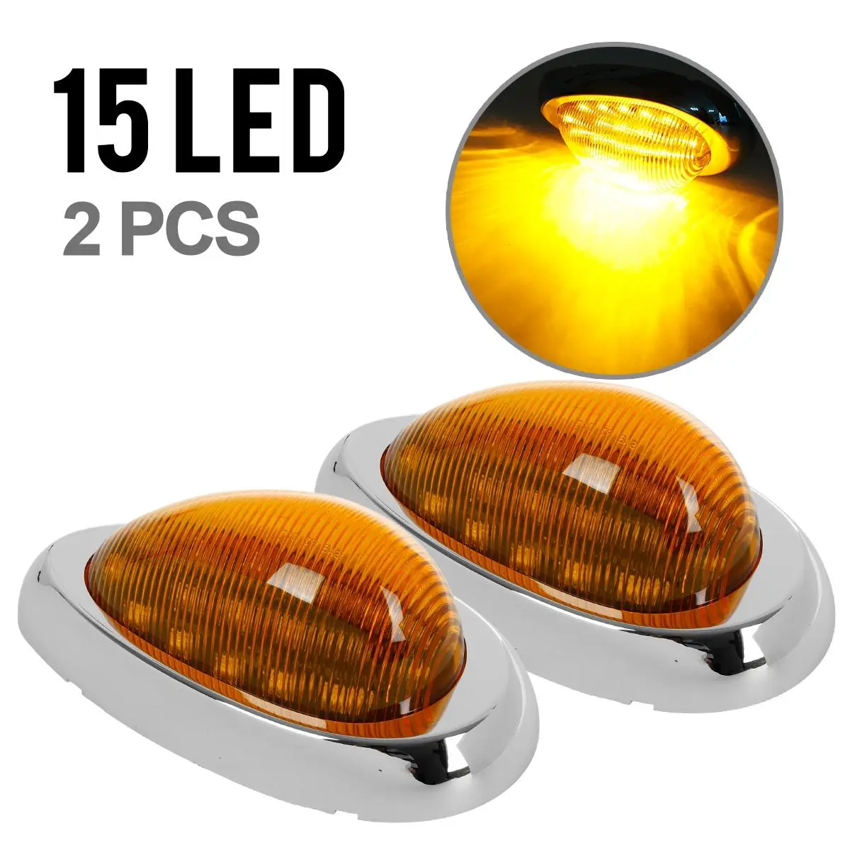 Partsam (2 x Amber) Teardrop Freightliner 15 LED Side Marker Turn Signal Light w/ Chrome Bezel.