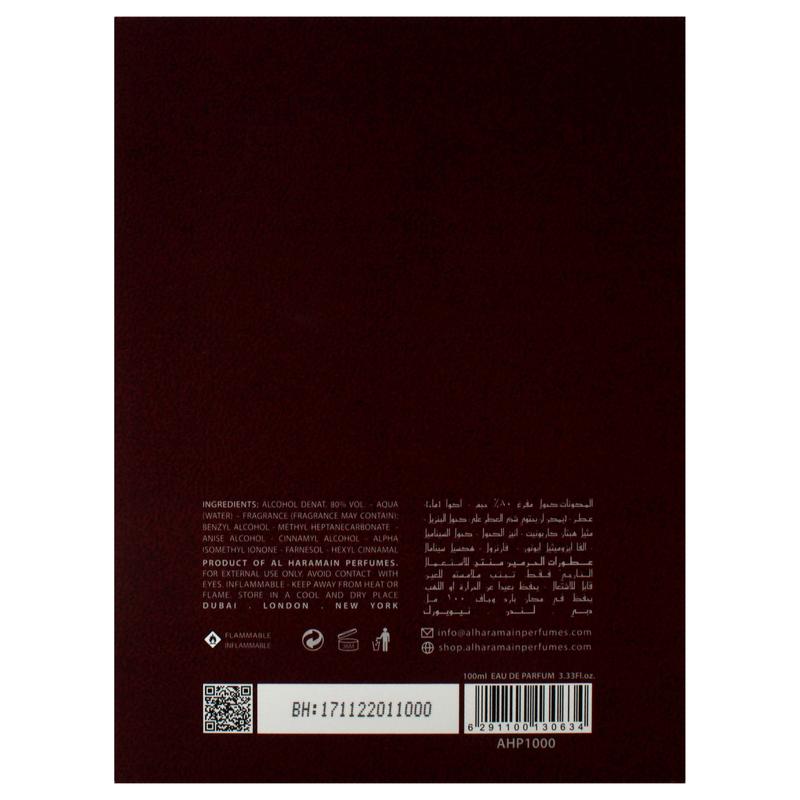 Launched by the design house of Al Haramain. Amber Musk is a sophisticated fragrance for all lovers of Al Haramain perfumes. The opening tones are a precise blend of classic oud, smooth white musk, and sweet amber.