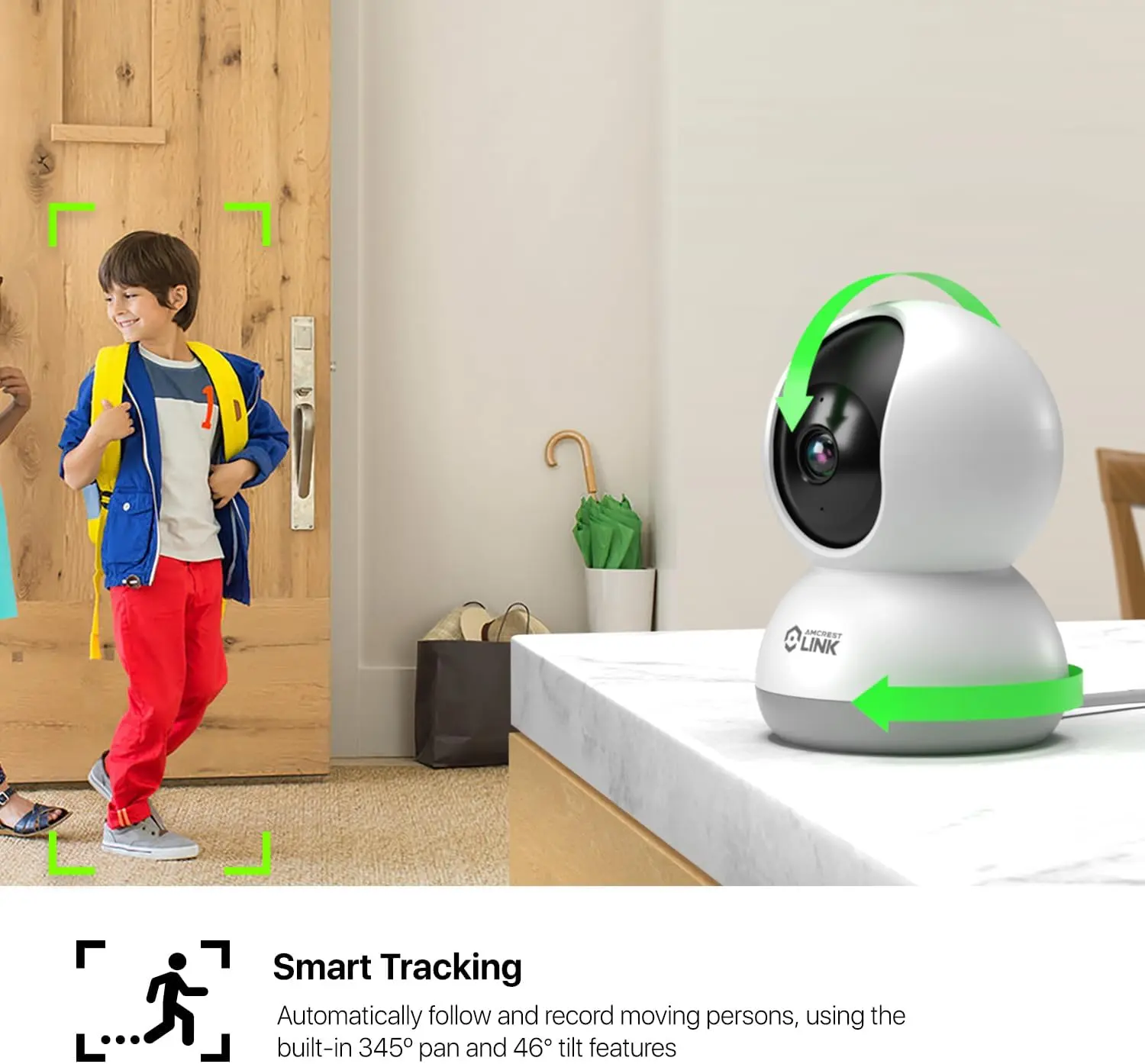 ·AI Powered Motion-Tracking: Detects and follows movement from your kids or visitors.