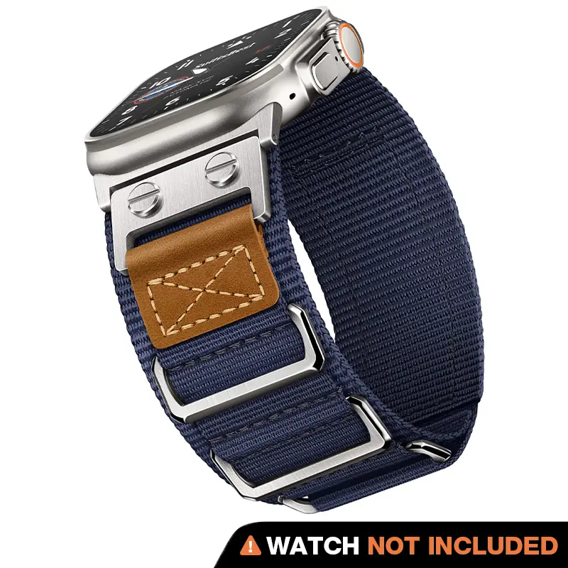 Drawing inspiration from the Air Force, this iWatch ultra band features an aviator style that captures the essence of a true adventurer. Crafted with precision and built for durability, this watch Rugged band combines the toughness of ballistic nylon, stainless steel, and genuine leather for a truly robust accessory