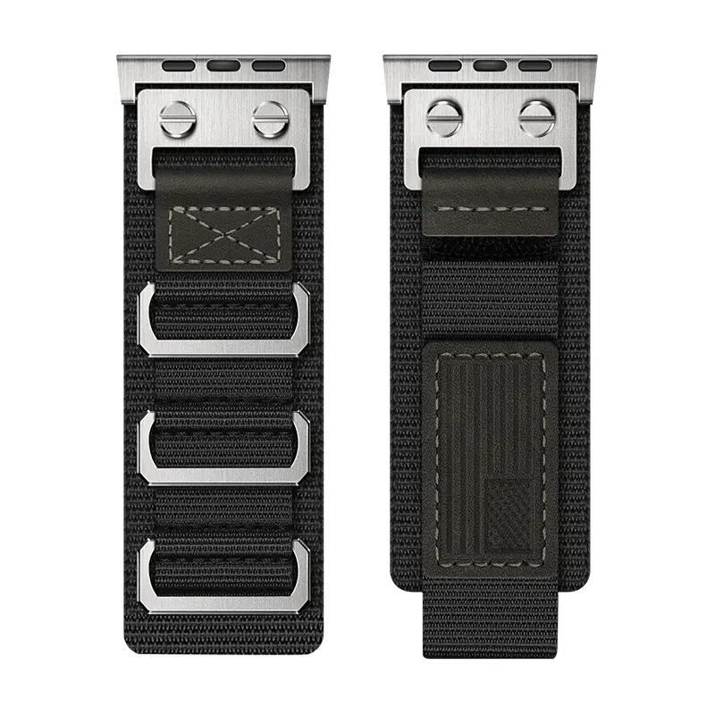 Unique triple-ring buckle makes this apple watch mens band stand out from the crowd. Crafted from stainless steel with a brushed and polished finish, the rugged metal buckles adds a refined aesthetic while ensuring your iWatch stays securely in place. Paired with military-grade nylon and genuine leather, it offers both durability and comfort