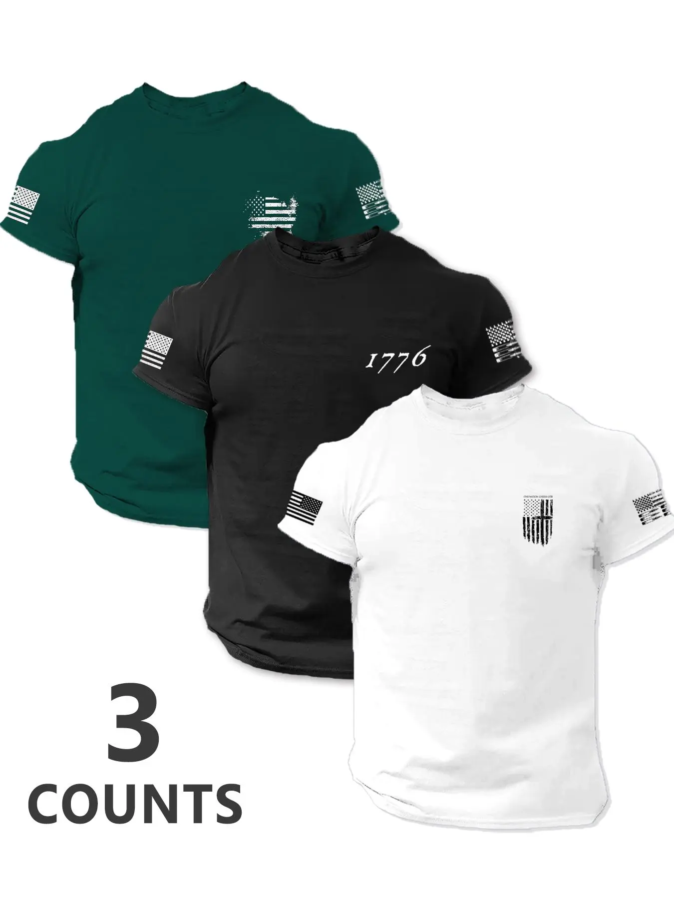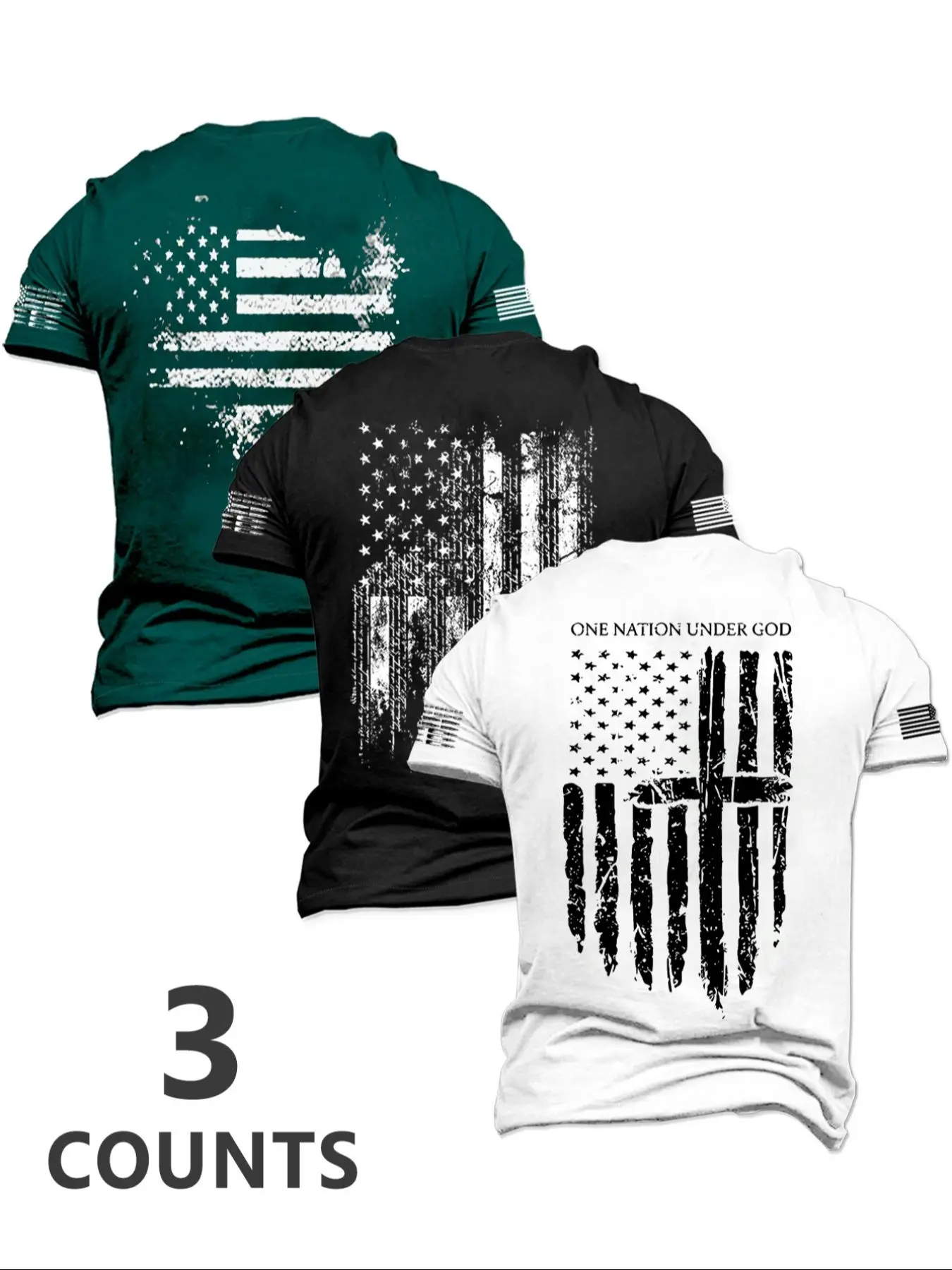 Show your pride in comfort and style with this Menโ€™s American Flag Print Short Sleeve Tee Set. Designed for those who live and breathe the red, white, and blue, these shirts combine patriotic style with everyday comfort โ€” perfect for summer cookouts, holidays, or casual wear. Each shirt is made from soft, breathable fabric that keeps you cool and comfortable whether youโ€™re working outdoors, fishing, or celebrating the 4th of July. With a regular fit and classic crew neck, these tees deliver a perfect blend of durability and comfort for any occasion. โธป โญ Key Features 	โ€ข	3-pack bundle โ€” more styles for less 	โ€ข	Bold American flag print on each tee 	โ€ข	Soft, breathable, and lightweight cotton-blend fabric 	โ€ข	Regular fit with a comfortable crew neck design 	โ€ข	Perfect for summer, outdoor work, barbecues, and patriotic events 	โ€ข	Easy to pair with jeans, shorts, or cargo pants 	โ€ข	Machine washable โ€” built to last through every wash โธป ๐Ÿ’ช Why It Stands Out 	โ€ข	Great for Memorial Day, 4th of July, Veterans Day, and daily wear 	โ€ข	Proudly patriotic look that fits any lifestyle 	โ€ข	Ideal for fishermen, outdoor workers, and weekend warriors 	โ€ข	Comfortable enough for all-day wear, stylish enough for any outing โธป ๐Ÿท๏ธ Keyword Block American flag t-shirt, menโ€™s patriotic shirt, USA tee, 4th of July shirt, menโ€™s summer tee, flag print shirt, American pride clothing, casual short sleeve shirt, comfy menโ€™s t-shirt, patriotic apparel, outdoor shirt, BBQ outfit, veterans day shirt, menโ€™s crew neck tee, soft cotton shirt, breathable menโ€™s top, TikTok shirt review, patriotic fashion, freedom tee โธป ๐Ÿ” Top 5 Hashtags #PatrioticStyle #AmericanFlagTee #USAApparel #MensFashion #FreedomWear