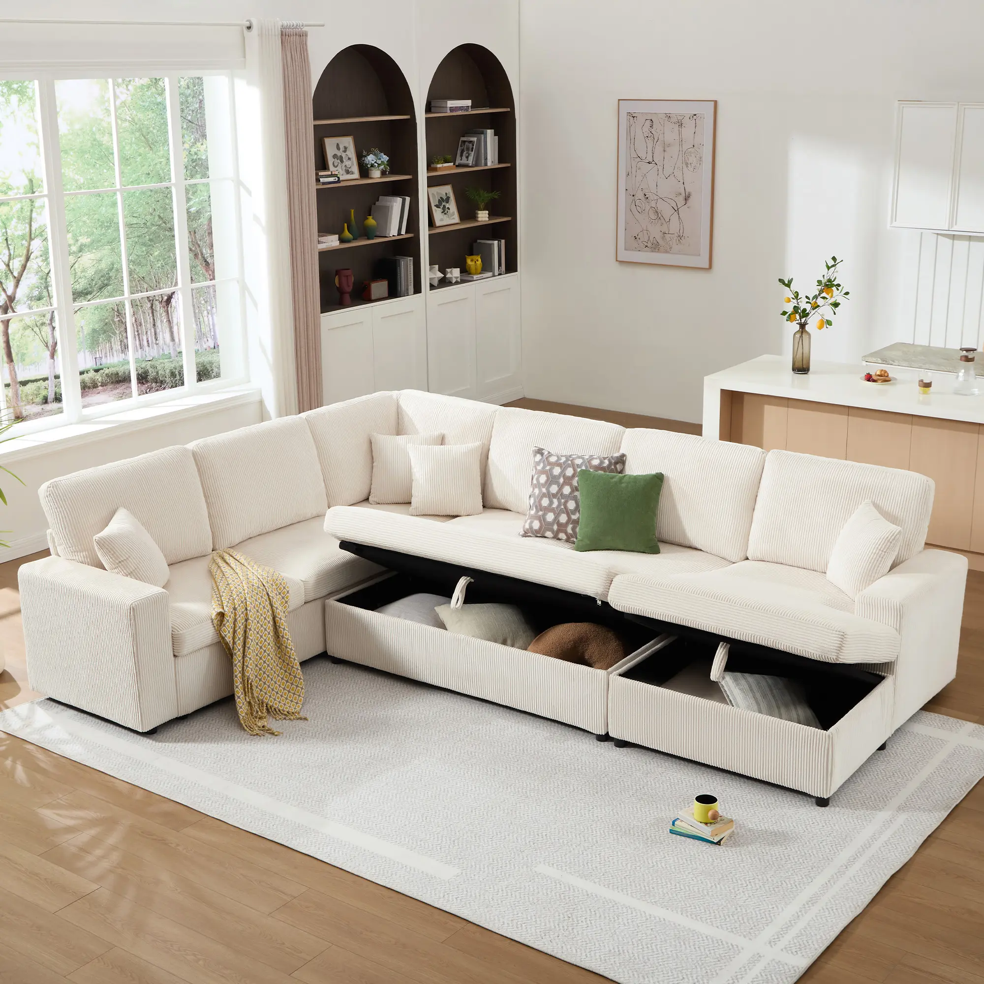 ·Tidy Home Made Easy: Tired of clutter? This sectional sofa features 3 hidden compartments with 315L storage - swallowing blankets, toys & more. Welcome to a tidier home where everything has its secret spot!