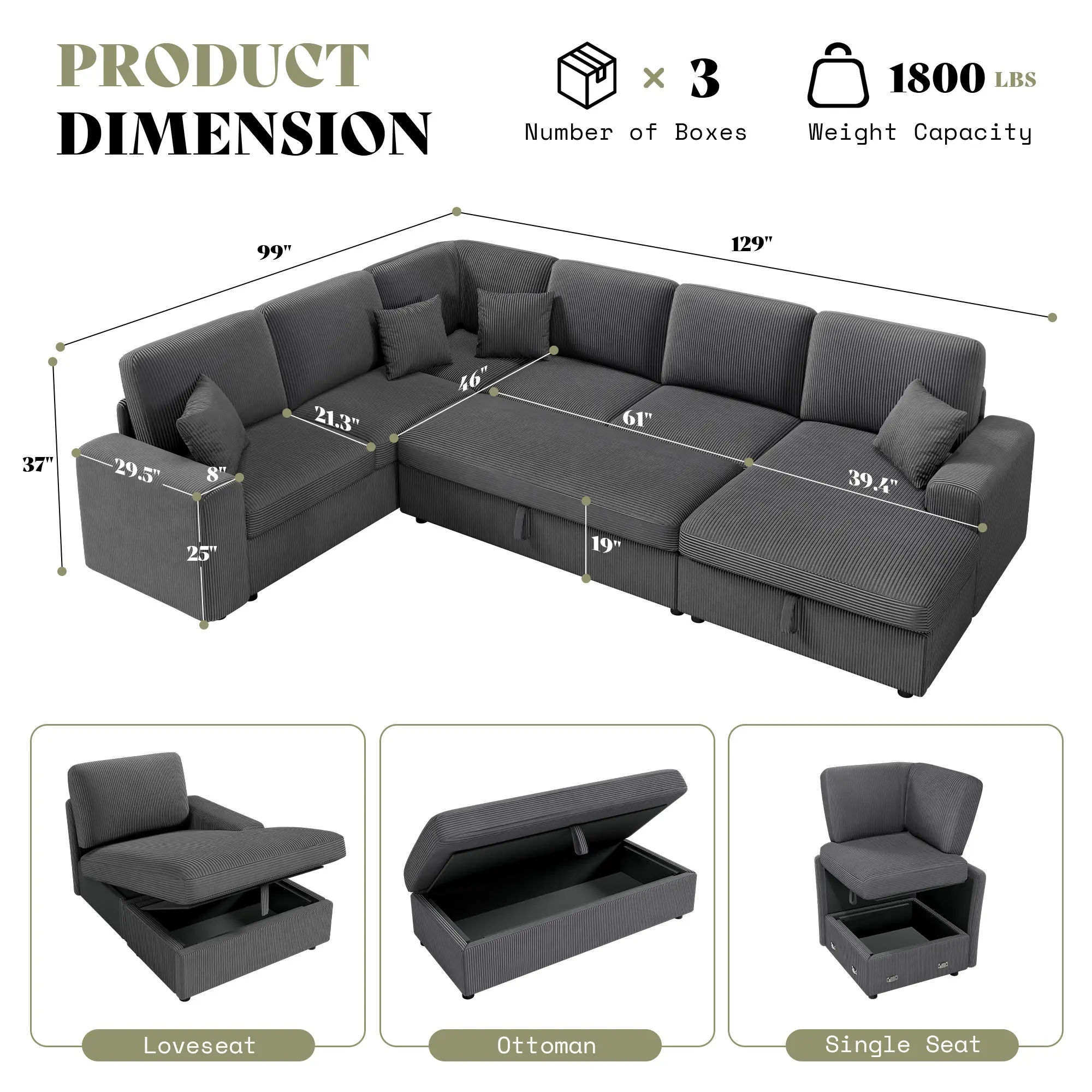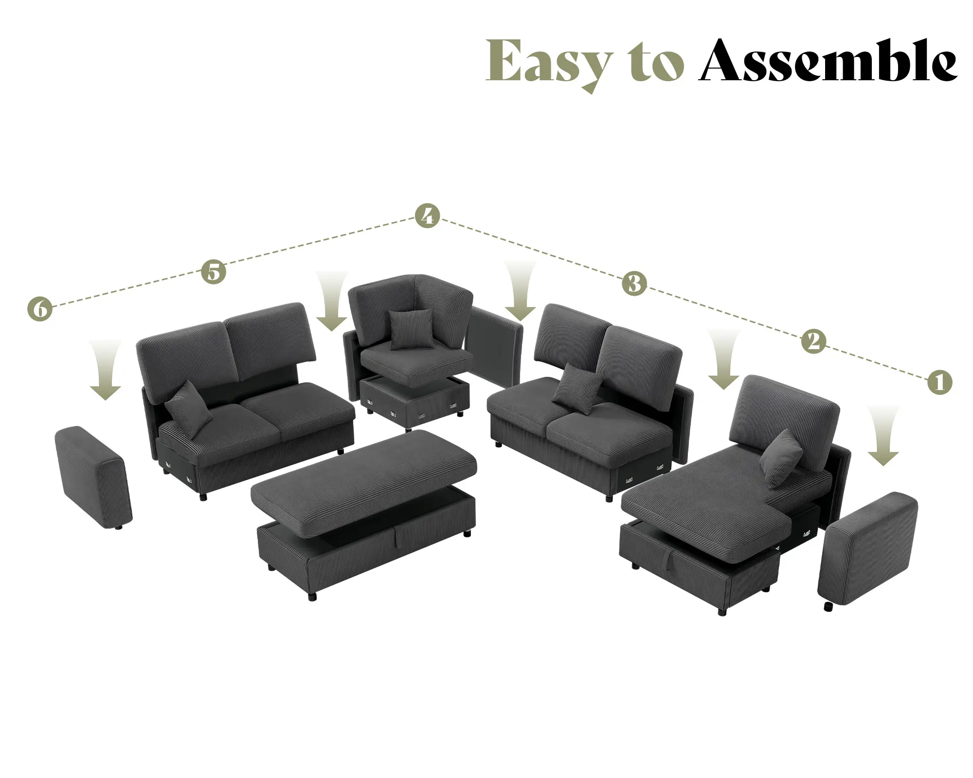 ·Easy 30-Minute Setup: With our clear instructions, two people can easily set up the entire sofa in about 30 minutes. Please note: your sectional will arrive in 3 separate boxes for secure shipping.