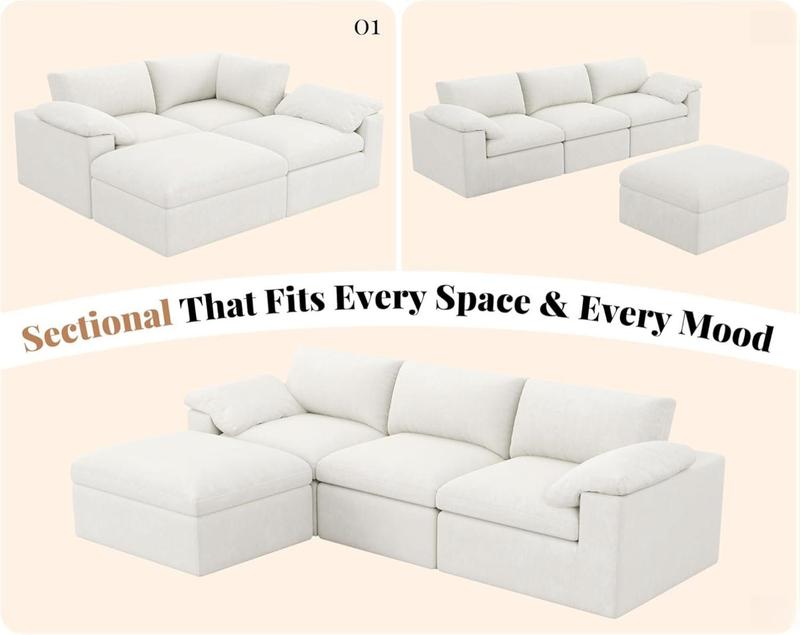 ·Soft Yet Supportive: With Generous cushions, plush backrests, and laid-back arm pillows,this modular couch invite you to relax, while memory sponge and spring system delivers lasting support wrapped in plush comfort.