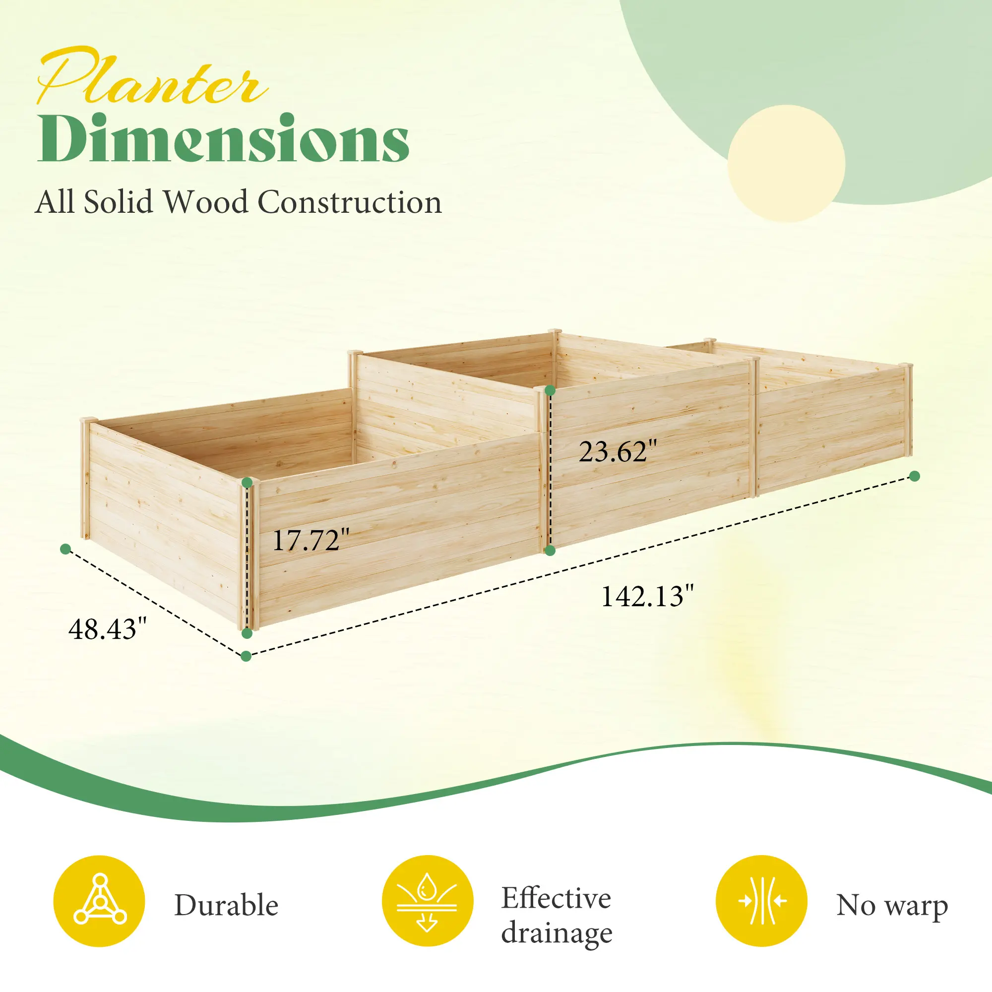 ·Materials: Made with 0.6 inch thick fir boards and 2 inch posts, this wood planter box is long-lasting. Each wide board uses a two-panel design with locking pins to prevent warping for greater stability