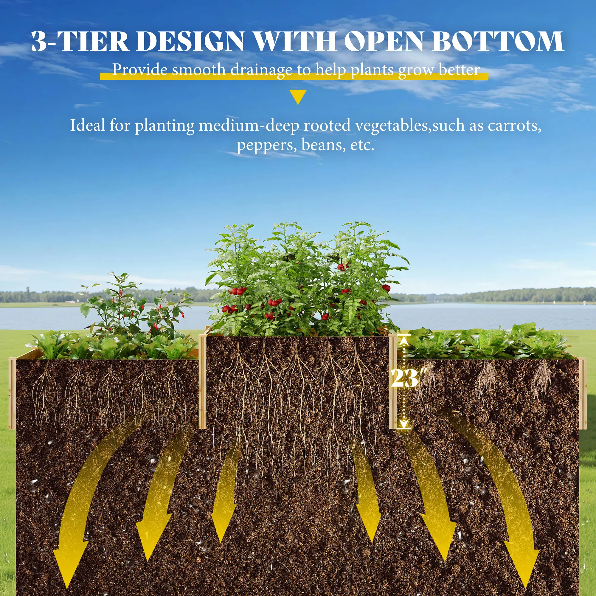 ![[Spring Sale] AMERLIFE 2 Tier Raised Garden Bed, Mortise & Tenon Structure 23 Inch Depth Fir Wood Planter Box, 3-Section with Open Base, Ideal for Vegetables, Flowers, Herbs in Backyard/Garden/Patio, 142x49x24 in [Spring Sale] AMERLIFE 2 Tier Raised Garden Bed, Mortise & Tenon Structure 23 Inch Depth Fir Wood Planter Box, 3-Section with Open Base, Ideal for Vegetables, Flowers, Herbs in Backyard/Garden/Patio, 142x49x24 in](https://p16-oec-general-useast5.ttcdn-us.com/tos-useast5-i-omjb5zjo8w-tx/b968039647d5414b9c6f23d0ce858b53~tplv-fhlh96nyum-origin-jpeg.jpeg?dr=12178&t=555f072d&ps=933b5bde&shp=a3510d86&shcp=6ce186a1&idc=useast5&from=2739998086)