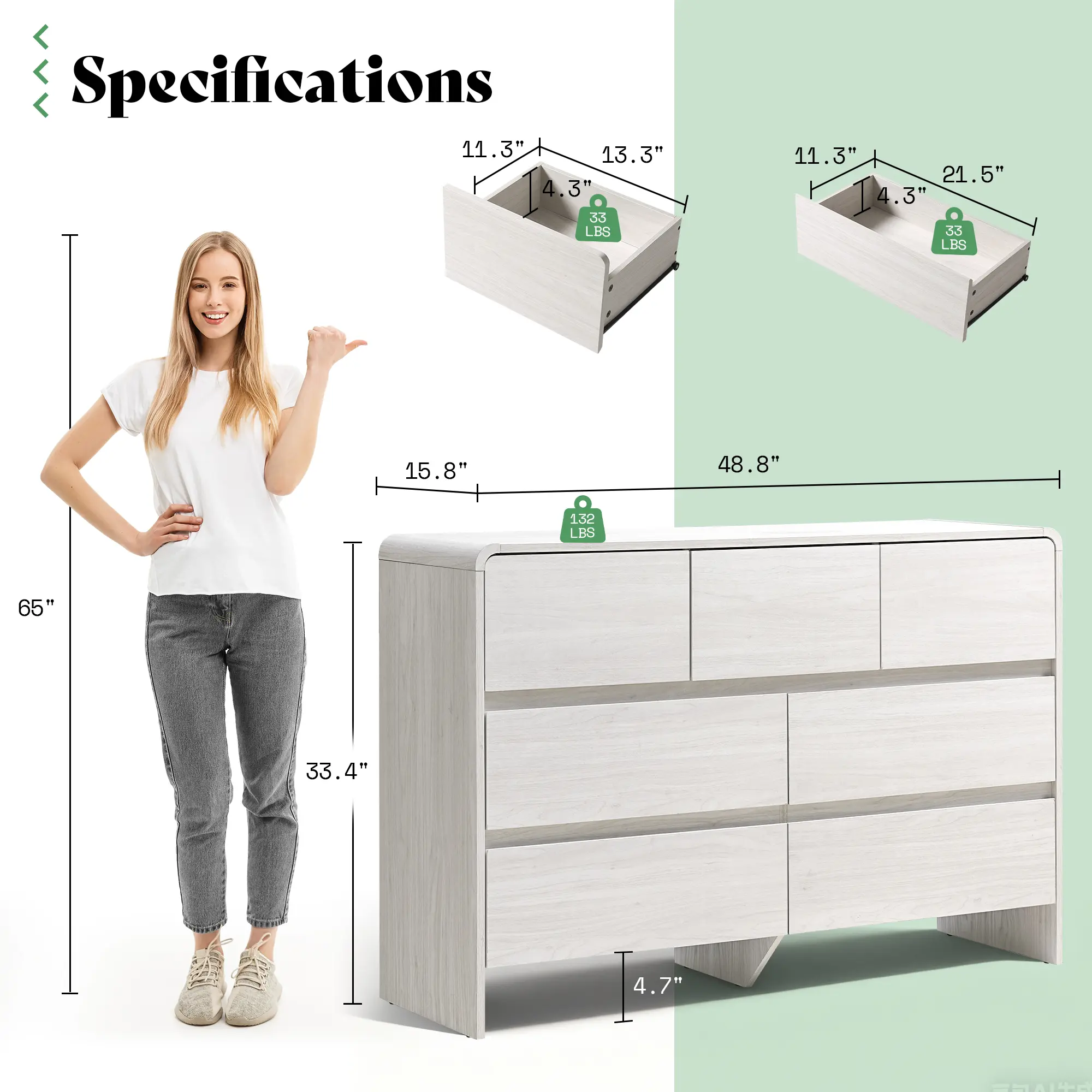 ·Sleek Look, Natural Warmth: With its light oak wood finish and streamlined silhouette, this wood dresser brings effortless elegance to any room. Use it as a tall dresser in your entryway, a chest of drawers in your hallway, or a living room dresser that doesn’t shout for attention.