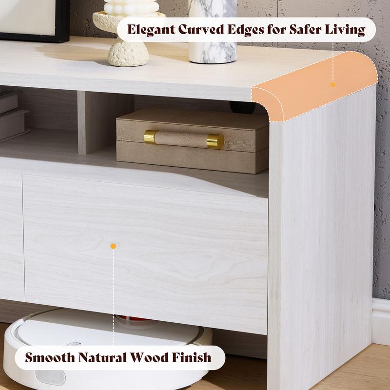 ·MODERN CURVED DESIGN: Smooth curved edges paired with a natural wood finish bring a warm, sleek look to your living room while reducing sharp-corner risks, making the TV stand safer for families with kids and pets