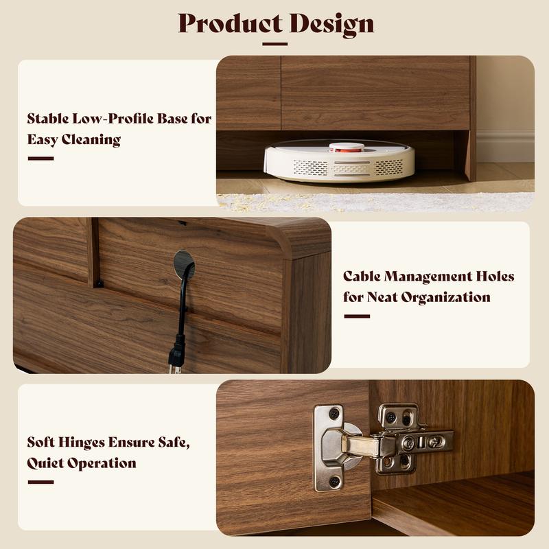 ·User-Friendly Details: Soft-close hinges ensure smooth, quiet use, while the open-bottom design allows easy robot-vacuum access for effortless cleaning. Anti-tip hardware is included for added stability and family-friendly safety
