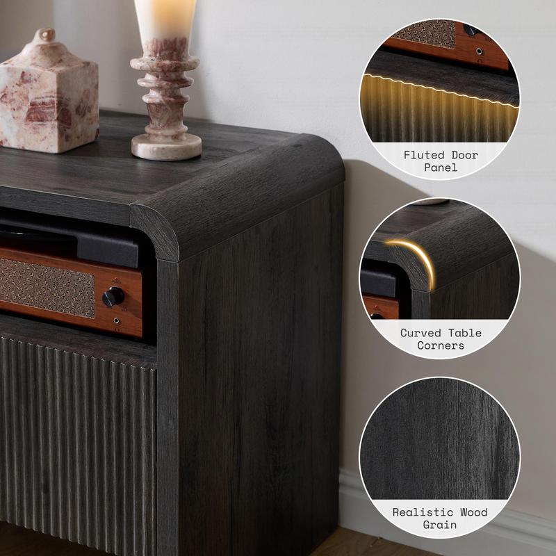 ·Elegant Fluted Design: Textured fluted doors pair with pine wood handles and a realistic wood-grain finish to bring warm, understated style to your TV console, fitting seamlessly with modern, minimalist living-room décor