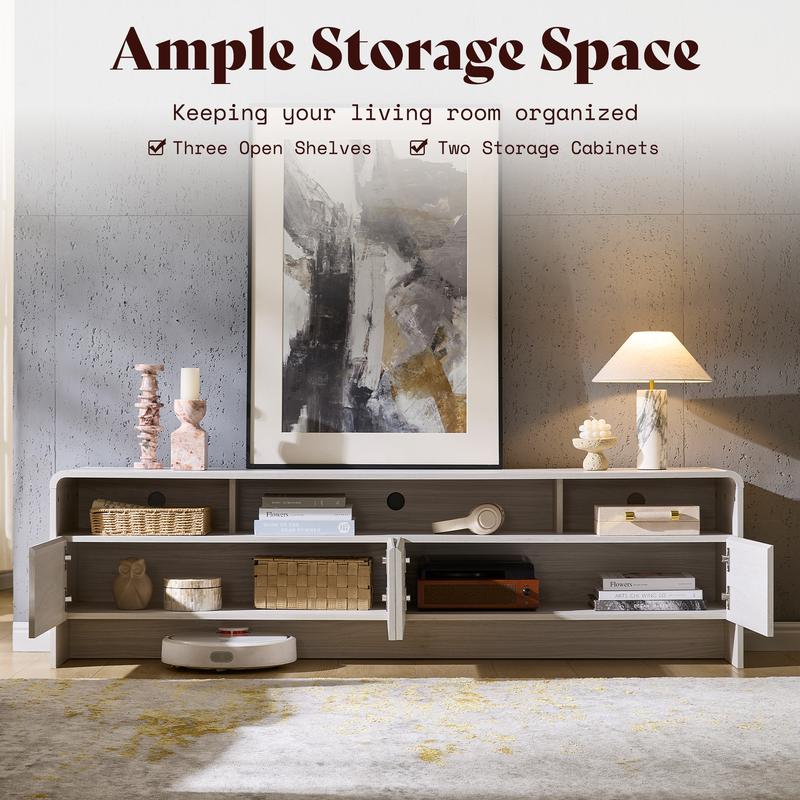 ·SPACIOUS STORAGE SPACE: Features a wide tabletop, 3 open cubbies and 4-door storage cabinets, this modern media console easily organizes your soundbars, game consoles, books and decors for a tidy living space