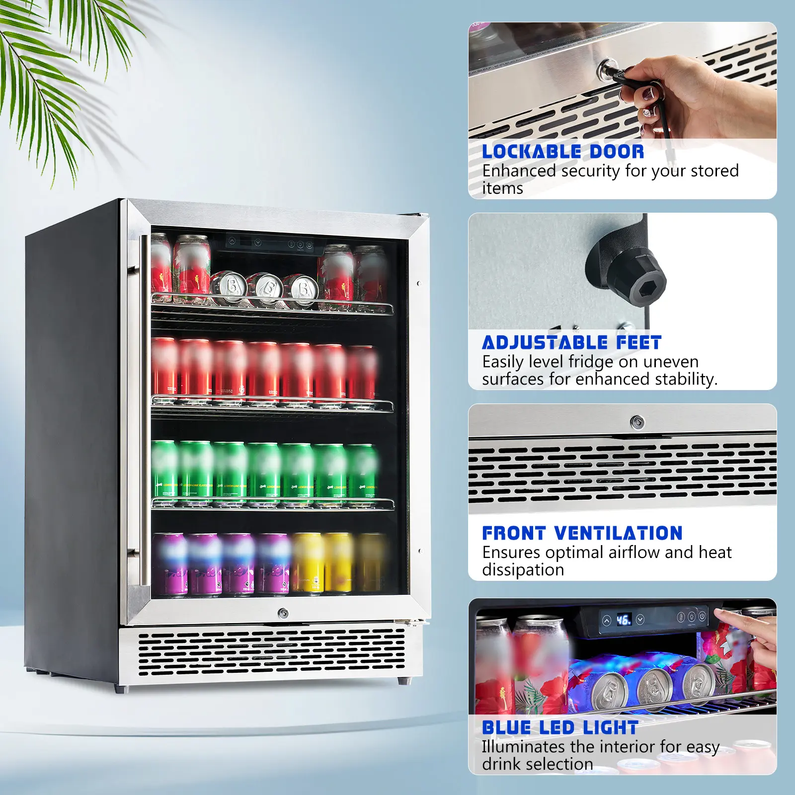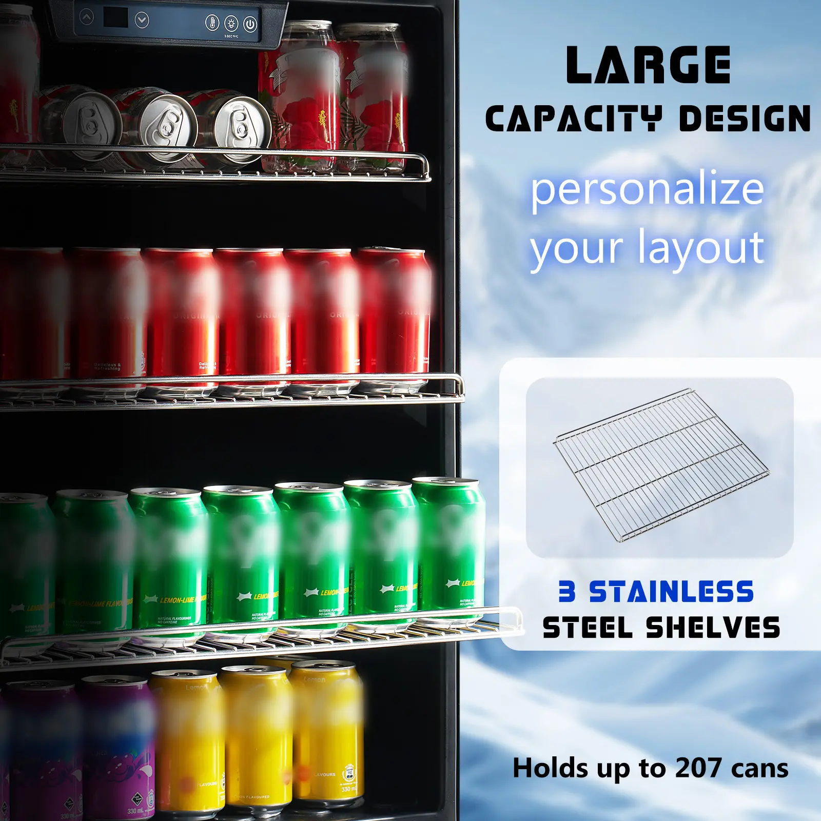 ·Customizable Storage Design: With adjustable shelves and doors that can be freely installed left or right, the beverage refrigerators adapt to your needs. The durable 304 stainless steel door construction adds elegance and longevity.