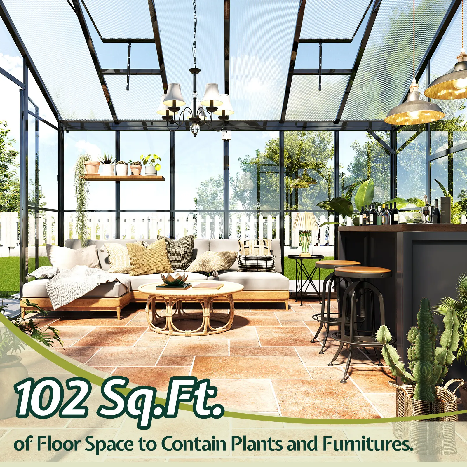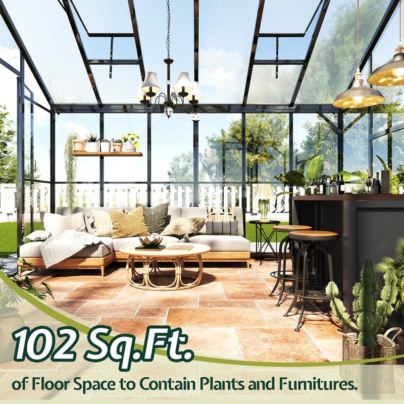 ·Adequate Space: Aluminum greenhouse with 6 ft Door and wall can serve as a plant breeding room, dining area, or study. It can be customized with furniture and plants to fit your needs.