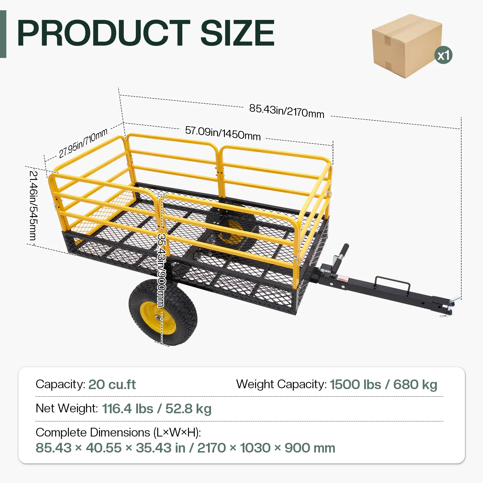 ·Expandable Towing Capacity: This yard cart includes a rear-mounted hitch to connect additional trailers of the same model—perfect for doubling or tripling your hauling space