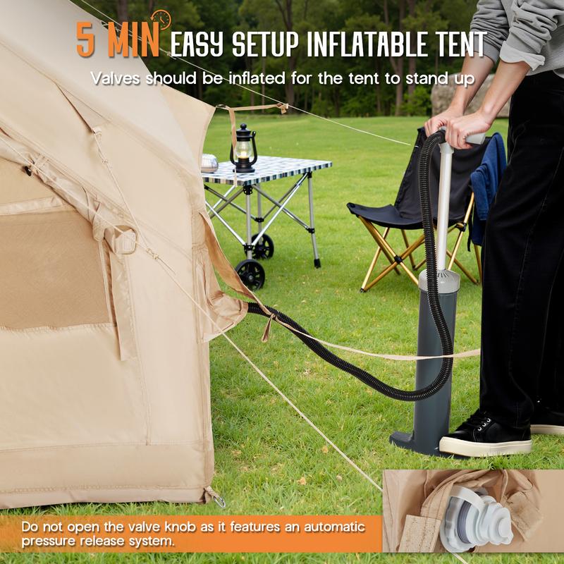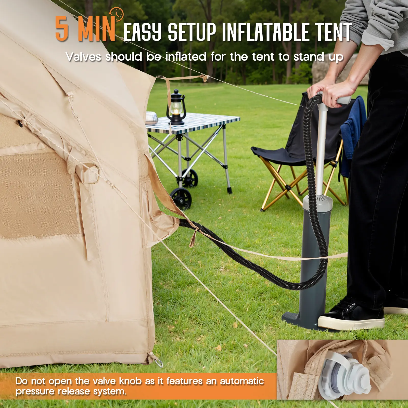 ·Fast & Easy Setup: This blow up tents for camping sets up in 5 minutes by one person.It features pole-free, self-supporting PVC air columns (0.5mm thick, 15cm wide) for stable structure and long-lasting airtight support