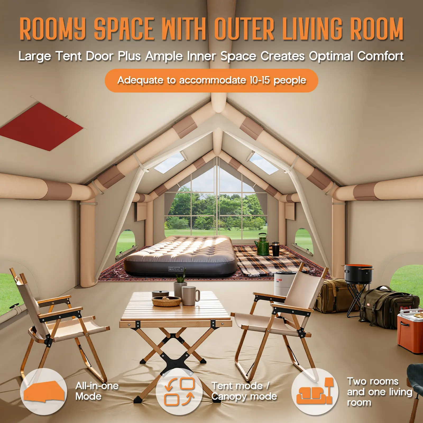 ·Spacious Interior: With a generous space, 3 different sizes inflatable camping tent can easily accommodates 2-15people, and offers independent zones for comfortable campin