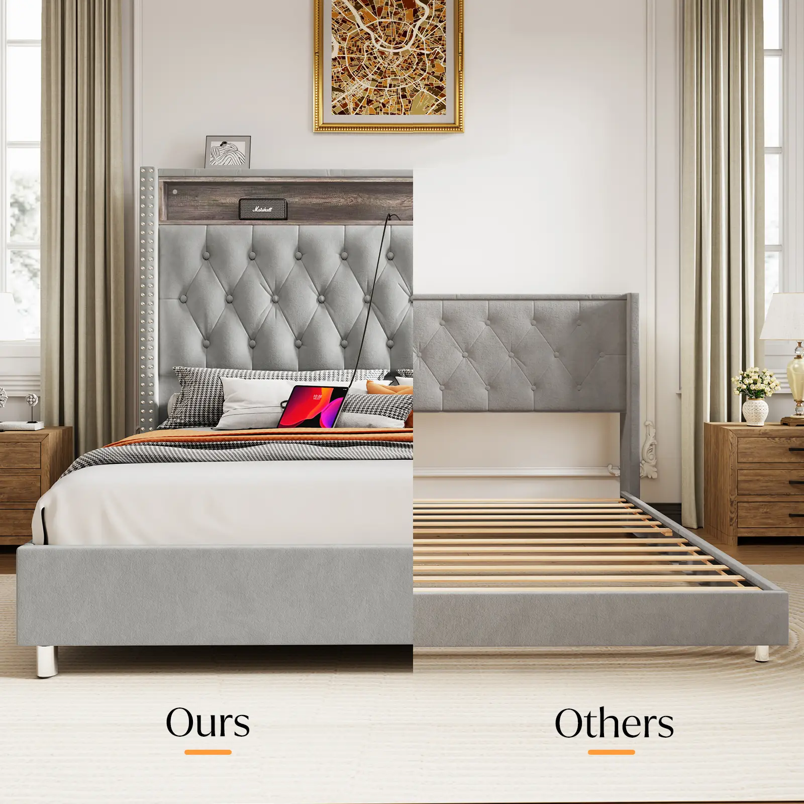 The bed turned out amazing. It took me and my husband about 4 hours to do it, with breaks in between. The headboard takes the longest, the rest went really fast. It’s a very durable bed. Everything works. Lights, usb plugs. I love everything about this bedframe and headboard. Worth the time to get it together.