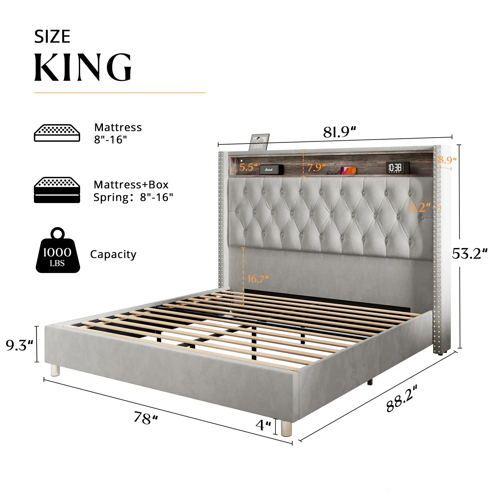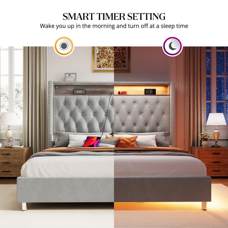 Light Gray, King, With Motion Lights Under Bed