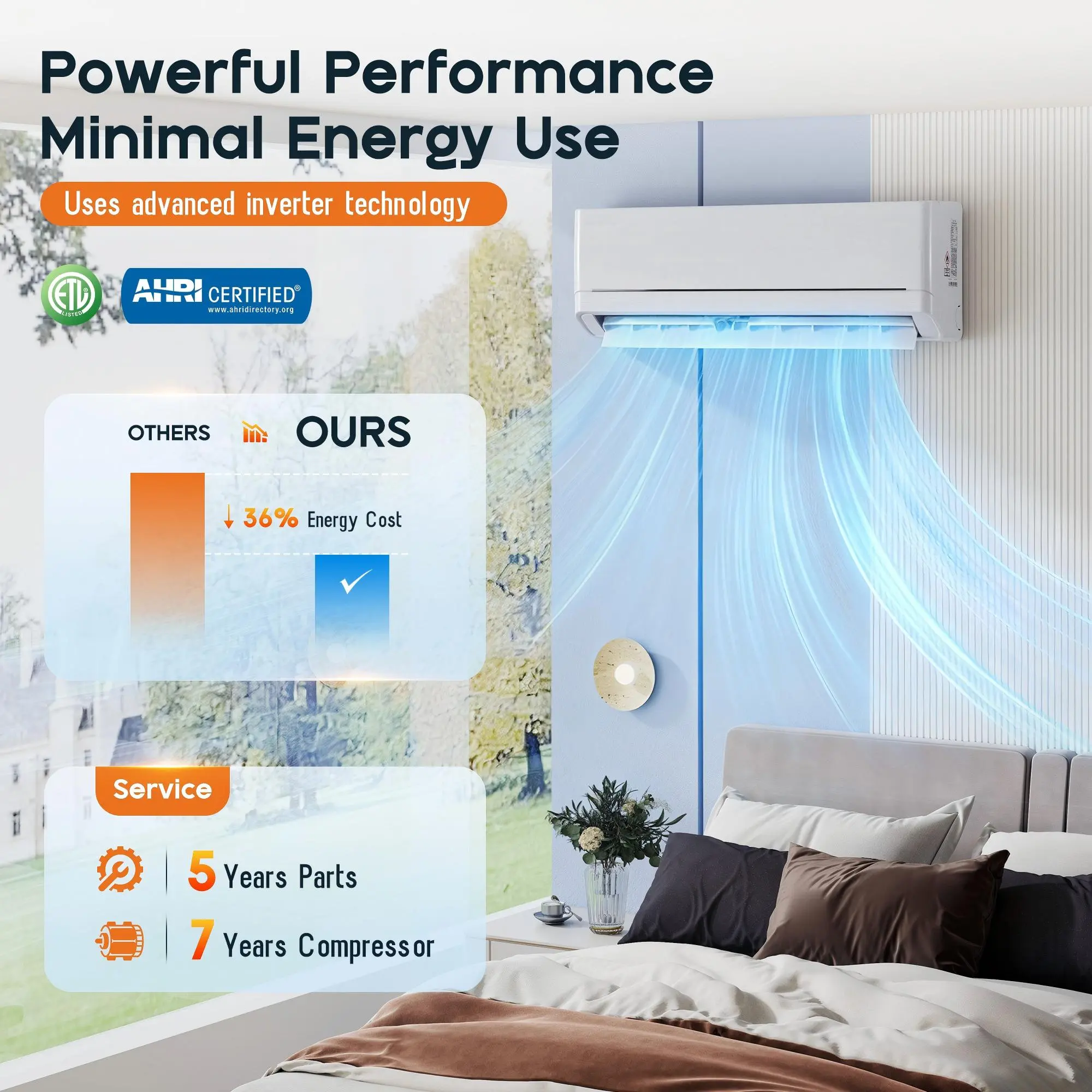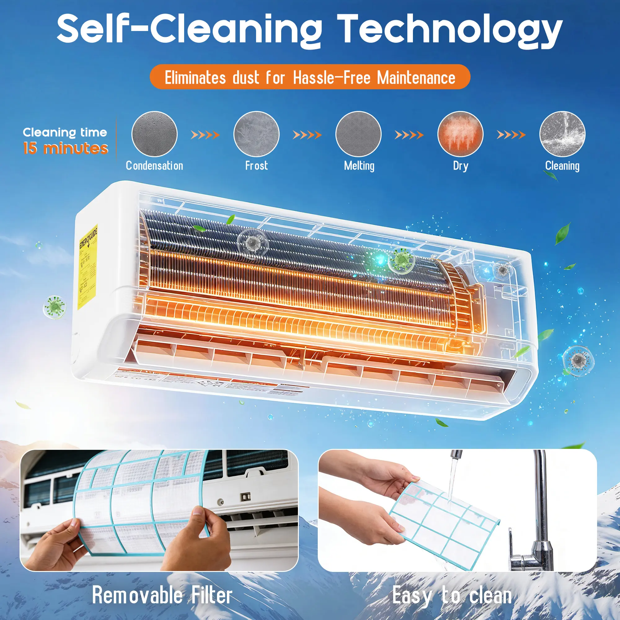 ·Self-Cleaning & Warranty Protection: This Air Conditioner offers self-cleaning function, easily removable filters and air blades for convenient cleaning, plus a 5-year compressor and 8-year parts warranty mini split ac/heating