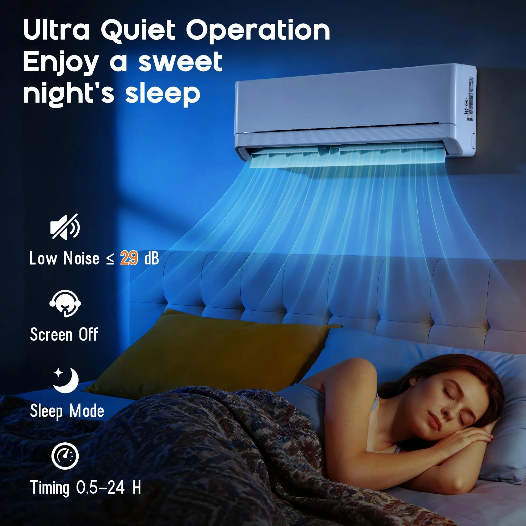 ·Quiet Operation & Easy Control: This split AC unit runs quietly below 29dB to create a peaceful environment at home or work, with simple, intuitive controls for effortless daily operation