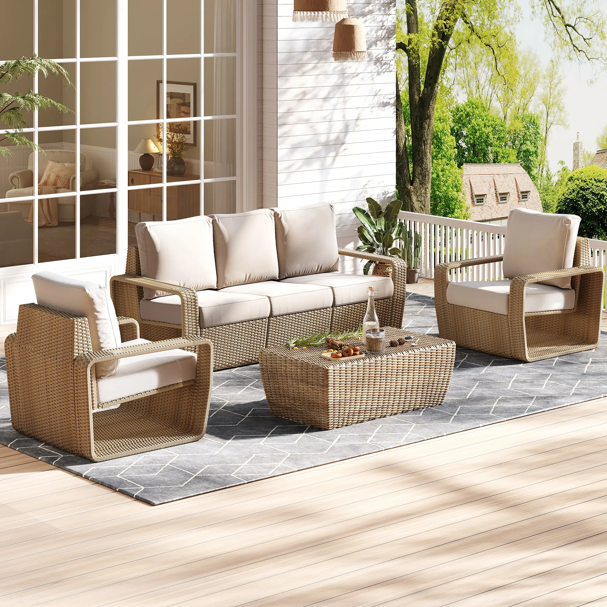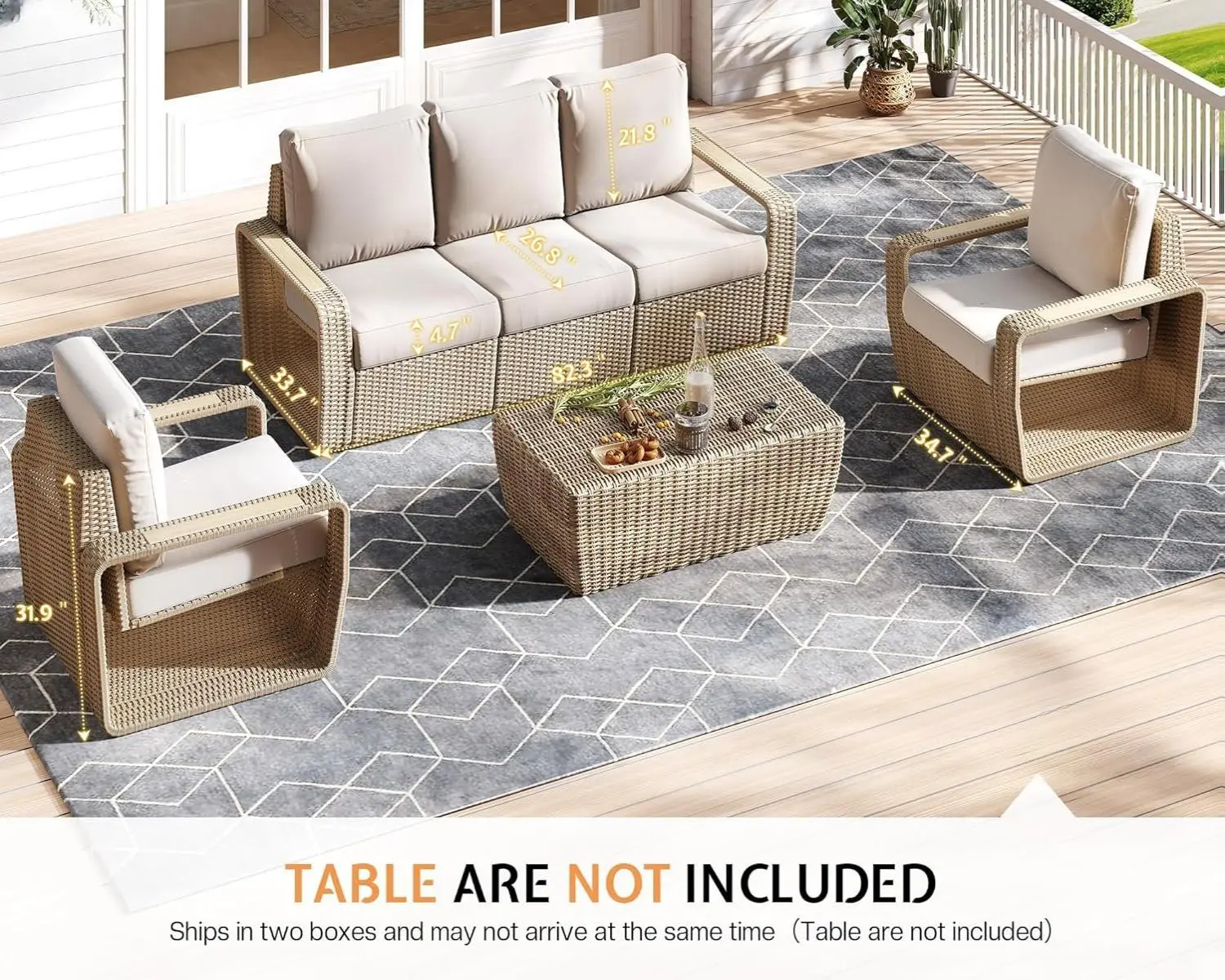 ·【Easy to Clean and Maintain】The cushion covers of the wicker sofa set are crafted from premium fabric, offering fade resistance, water repellency, and easy washability